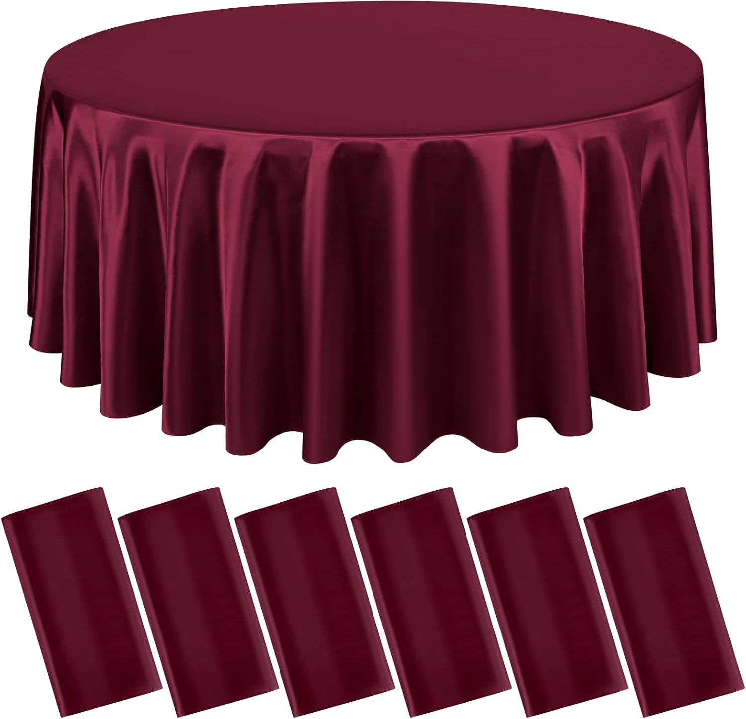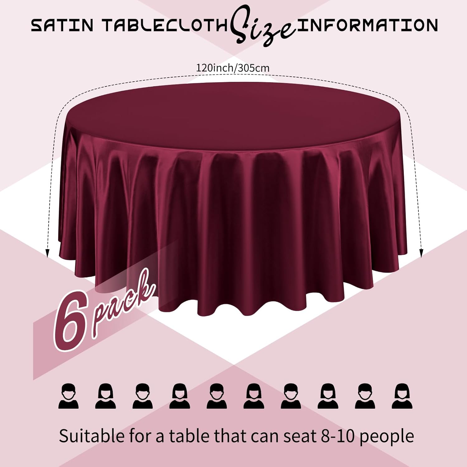 6 Packs Satin Tablecloth 120 Inch Burgundy Round Table Cloth Silk Tablecloth Smooth Fabric Overlay Satin Table Cover Decoration for Wedding Party Banquet Events