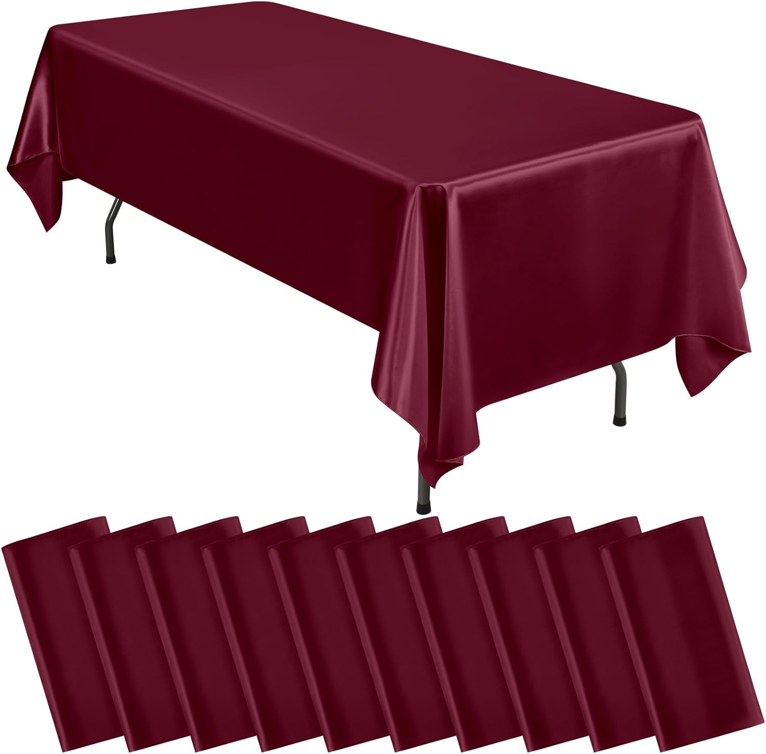 10 Packs Satin Tablecloth 57 x 108 Inch Burgundy Rectangular Table Cloth Silk Tablecloth Smooth Fabric Overlay Satin Table Cover Decoration for Wedding Party Banquet Events