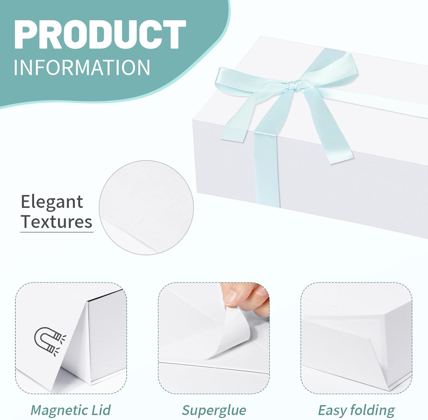 • FRIENDLY DESIGN: This white gift box has a sturdy magnetic closure that can be easily opened and closed again and again. The surface of the box is printed with special texture and elegant shape.