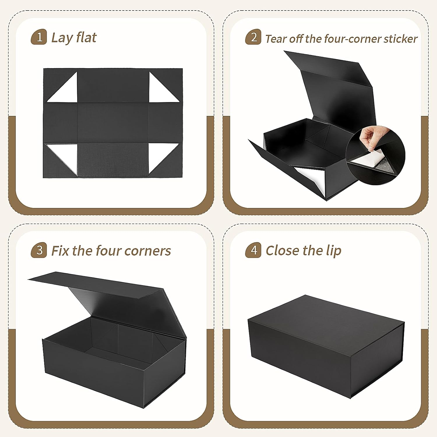 • EASY TO ASSEMBLE: For easy transportation,the gift box is designed to be folded. Unpack the package,tear off the white triangle sticker,paste and assemble the box.