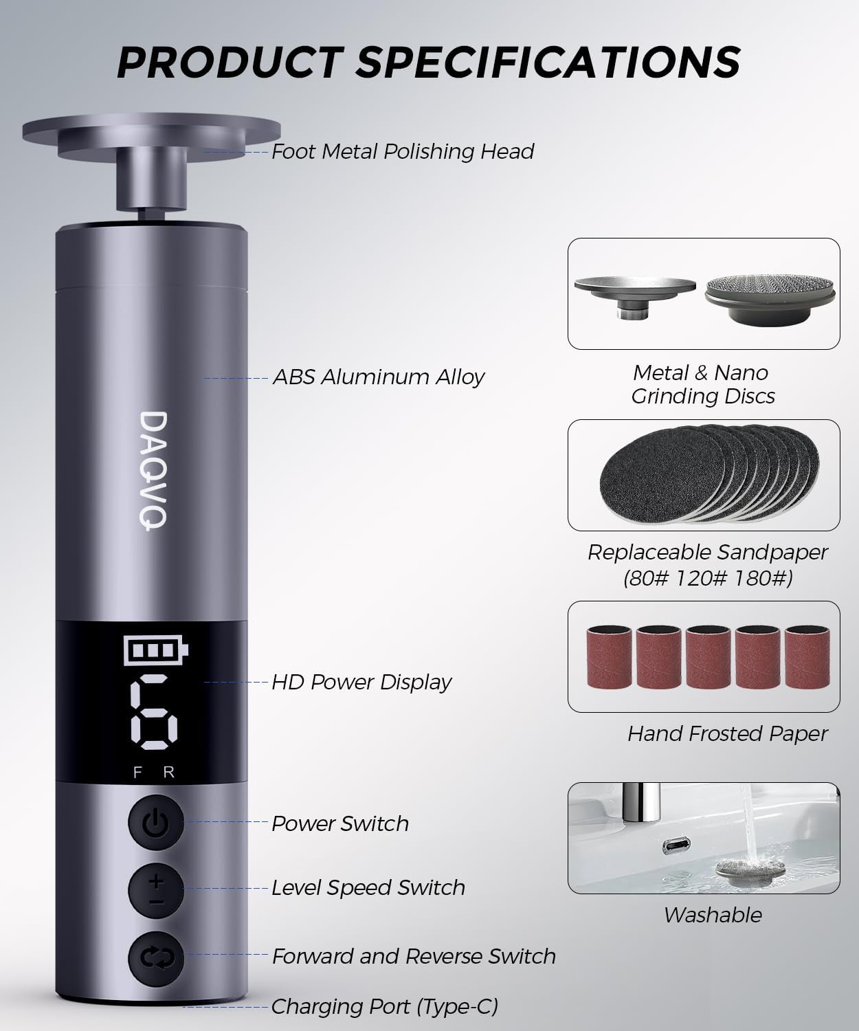 • Well Made & Ideal Gift: The DAQVQ Electric Foot Callus Remover is crafted with a sleek, anti-slip aluminum body, multi-frequency motor-mechanism, and high copper core features strong torque ensuring a smooth & pain-free experience. A thoughtful gift for wife, mom, best friend classmate or colleague, offering you beautiful feet and saving you time and money on foot spa treatments