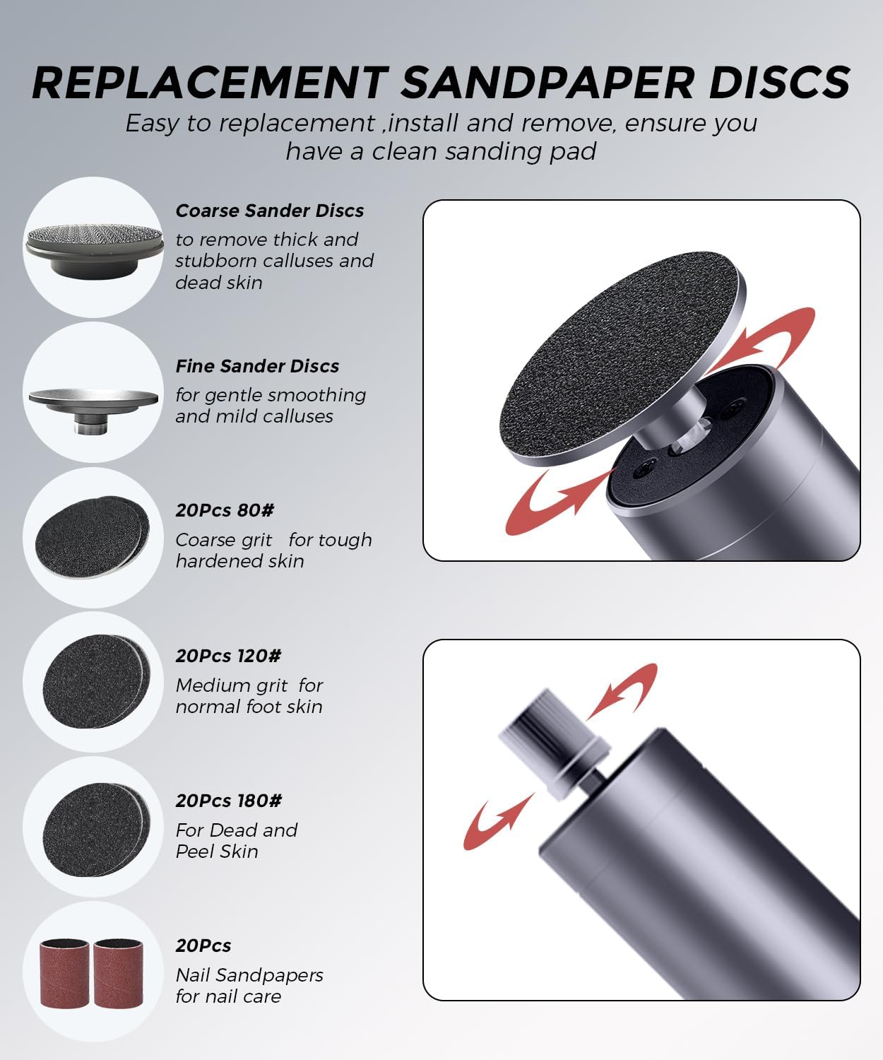 Electric Foot Callus Remover with Nano-Glass Head & 60pcs Sandpaper Discs(3 Sizes),2 in 1 Cordless Aluminum Callus Remover for Feet and Nail Care,Adjustable Speed Pedicure Tools for Dead Skin-Grey
