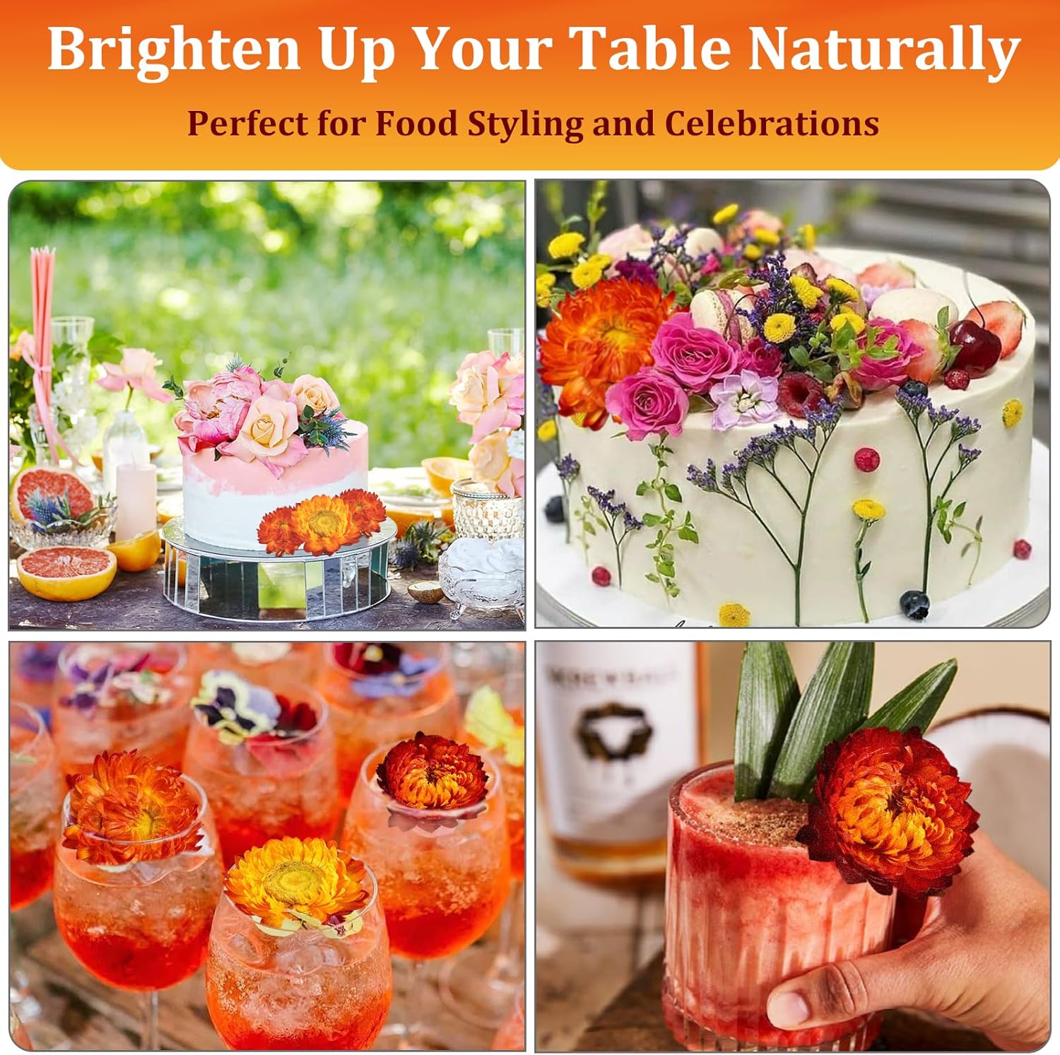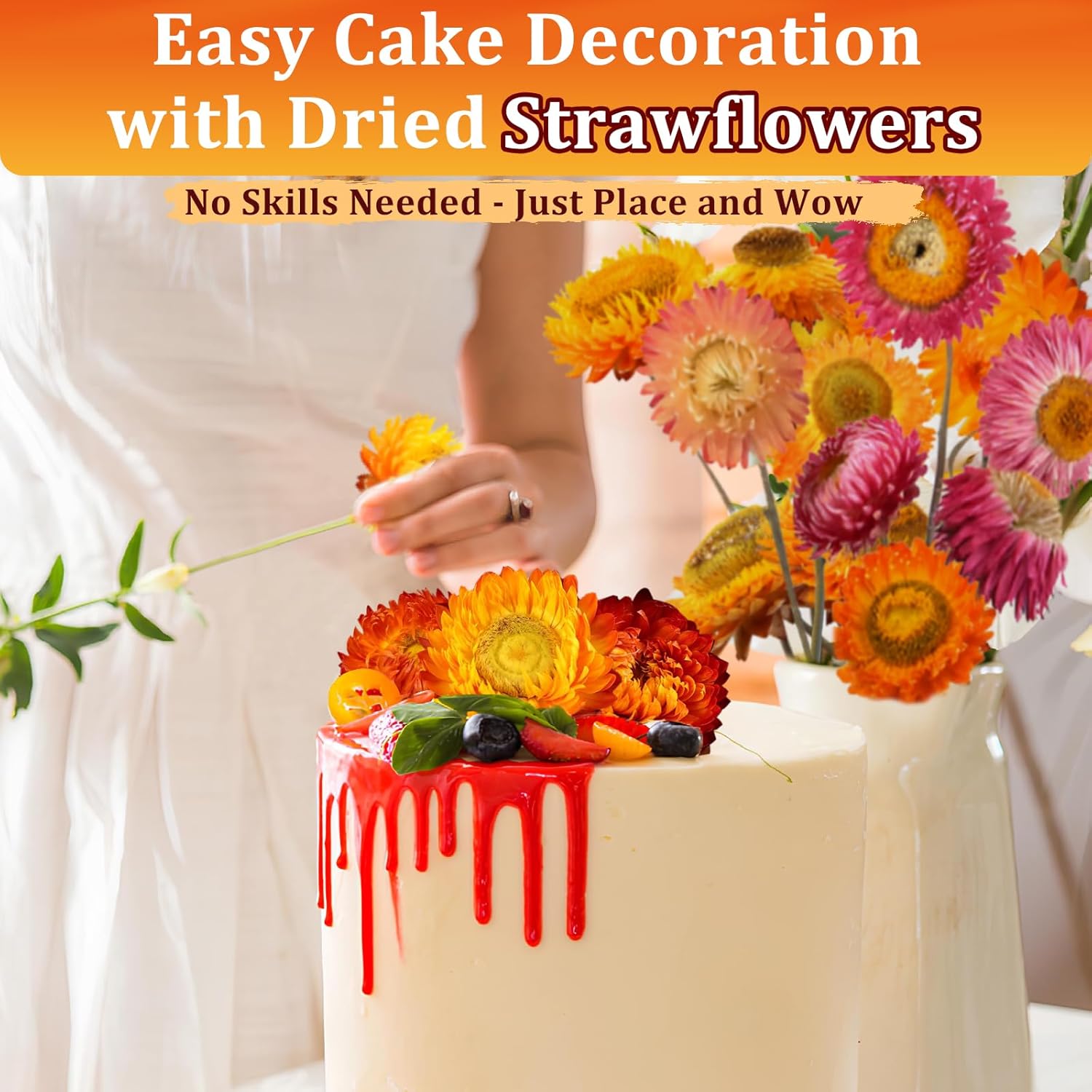 • Vivid Natural Colors: Featuring naturally dried colorful blooms, our dried strawflowers add a stunning visual touch to cupcakes, wedding cakes, drinks, and artistic desserts