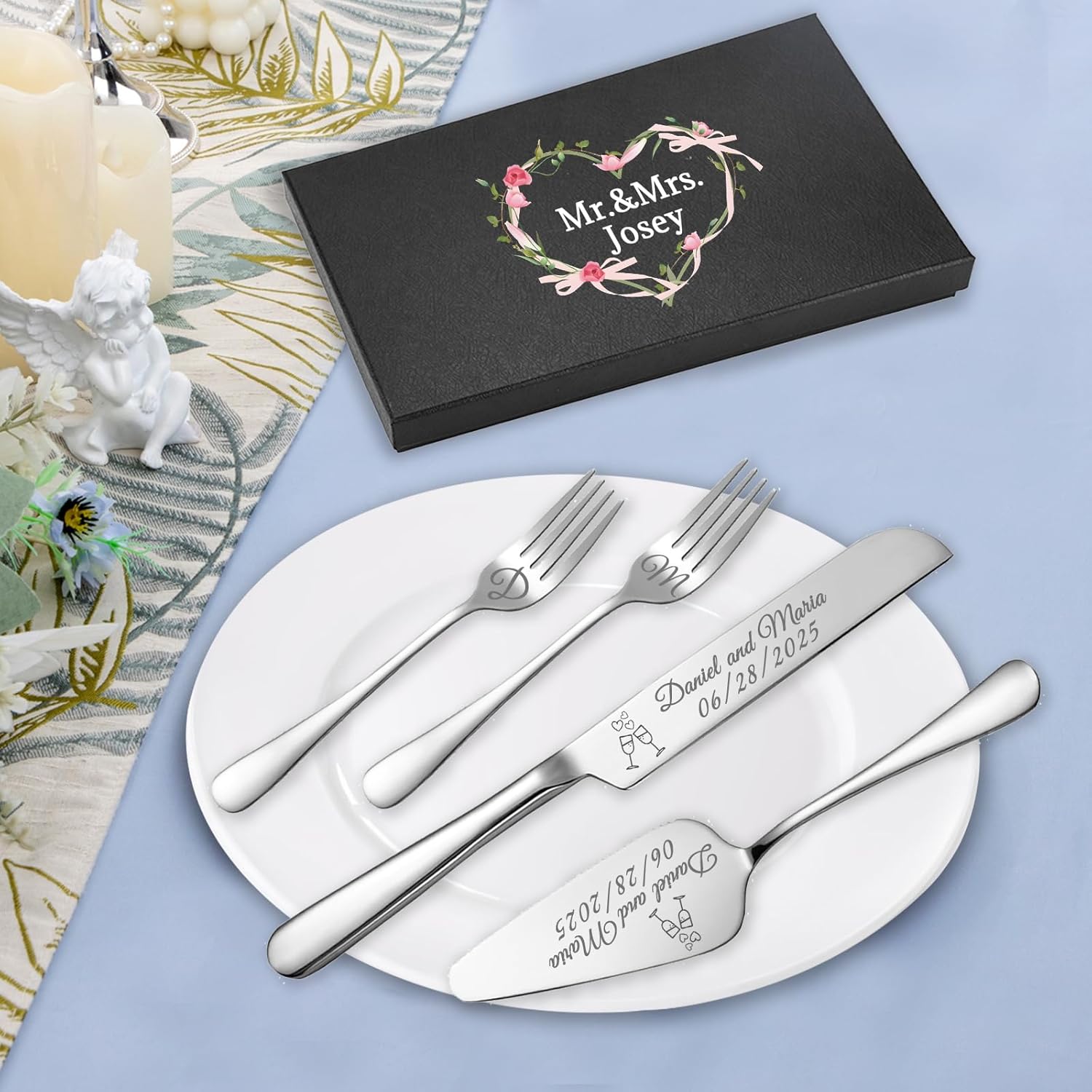 • Personalized Wedding Cake Cutting Set : Our wedding cake cutting set allows you to engrave names, making it a one - of - a - kind keepsake. Commemorate your marriage with this customized set, adding a touch of intimacy for special Ceremony