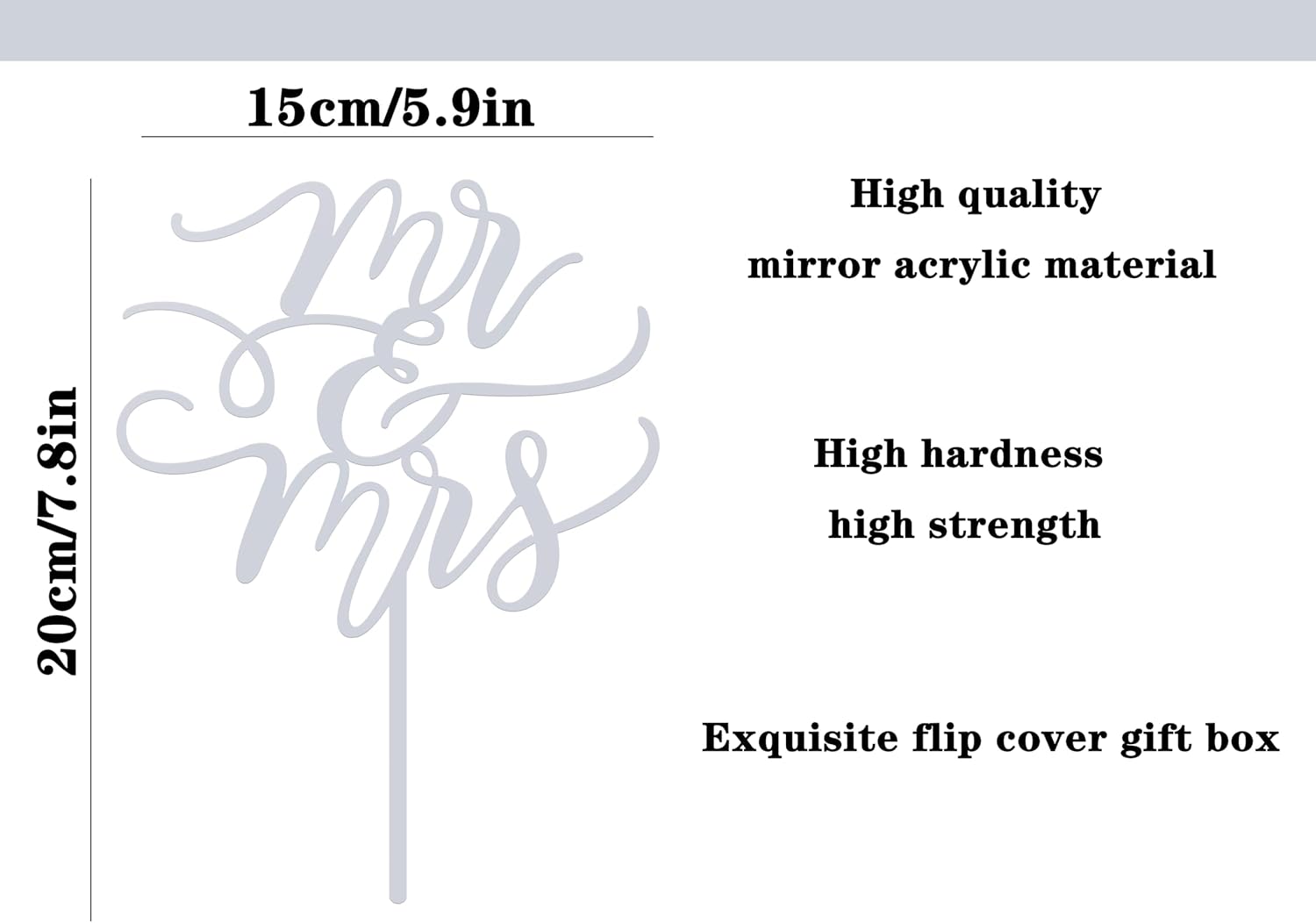 • Tip: Mirror acrylic cake topper has protective film on both sides to prevent fingerprints from sticking