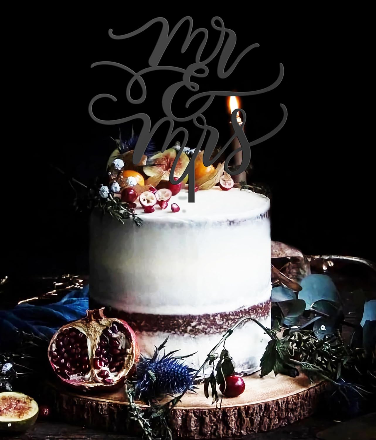 Mr and Mrs Cake Topper - Glitter Black Acrylic Wedding Cake Decorations, Bride and Groom Cake Pick (Black)