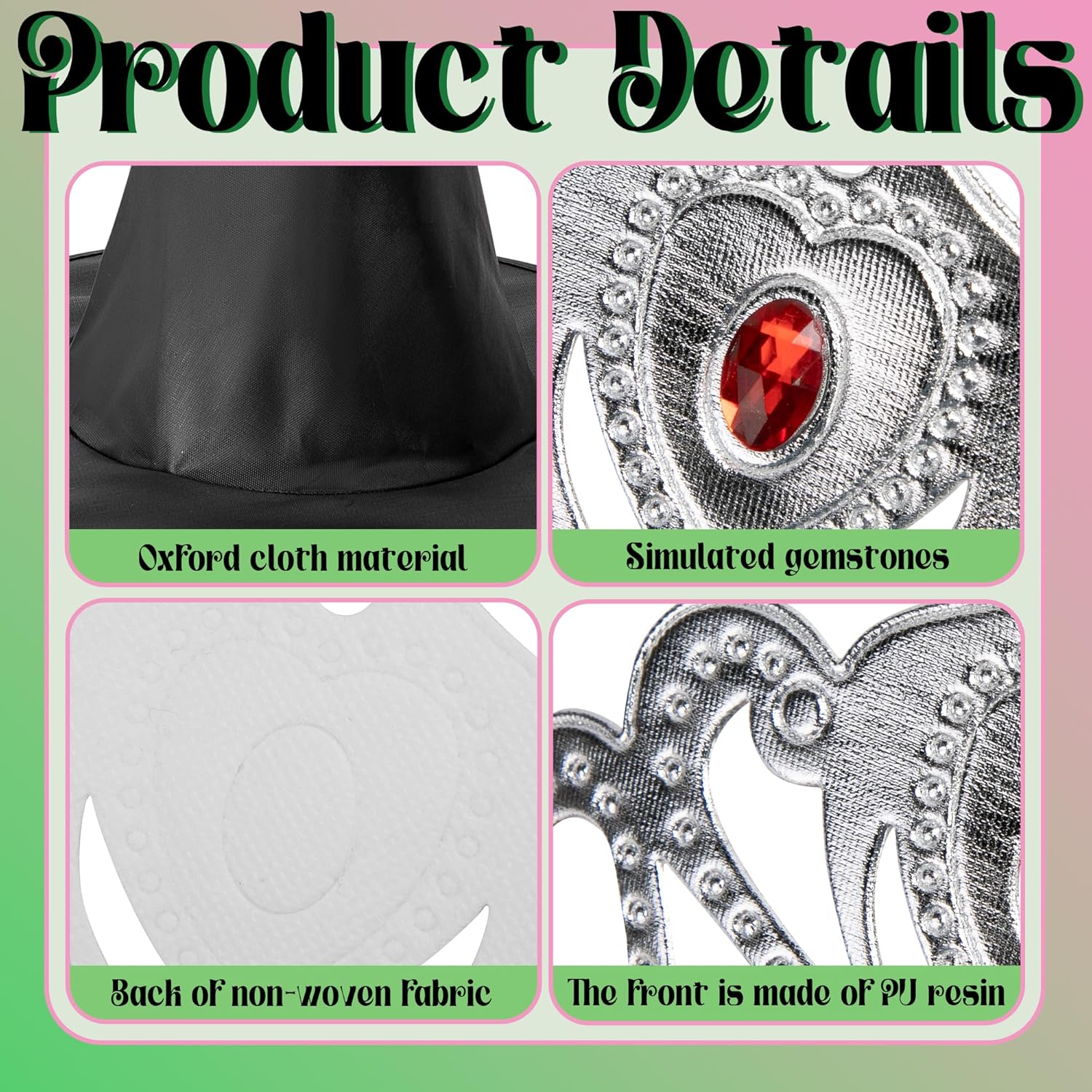 • Comfortable Material: The witch hat is made of Oxford fabric, which is breathable and comfortable for wearing. The princess crown is made of a PU resin surface and a non-woven material backing, making it gentle on the skin