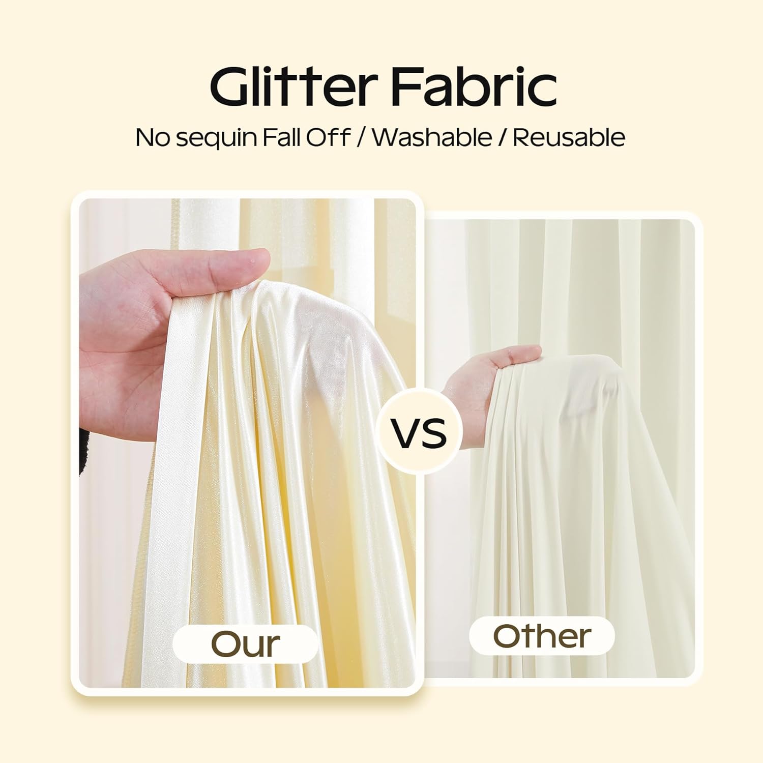 • Champagne Shimmer Backdrop Curtain Anti-wrinkle:This glitter backdrop curtain made of luminous fabric,it is thick and well-made,the fabric is very smooth and drapes fantastically.it could added some elegance to a event. The material can keeping the natural droop when falls on the floor to perfect for various theme events.