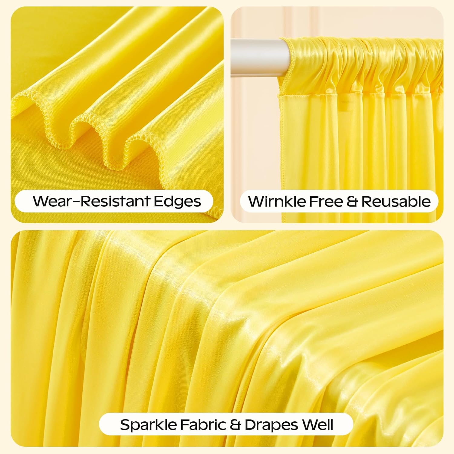 • Easy Care & Reusable Gold Glitter Drapes for Backdrop:We recommend you could clean the gold photo backdrop with hands.Or you could put the satin glitter backdrop drapes in a laundry bag and then use the washing machine to wash it.We recommend cleaning and storing it after used, you can use it again when needed next time.