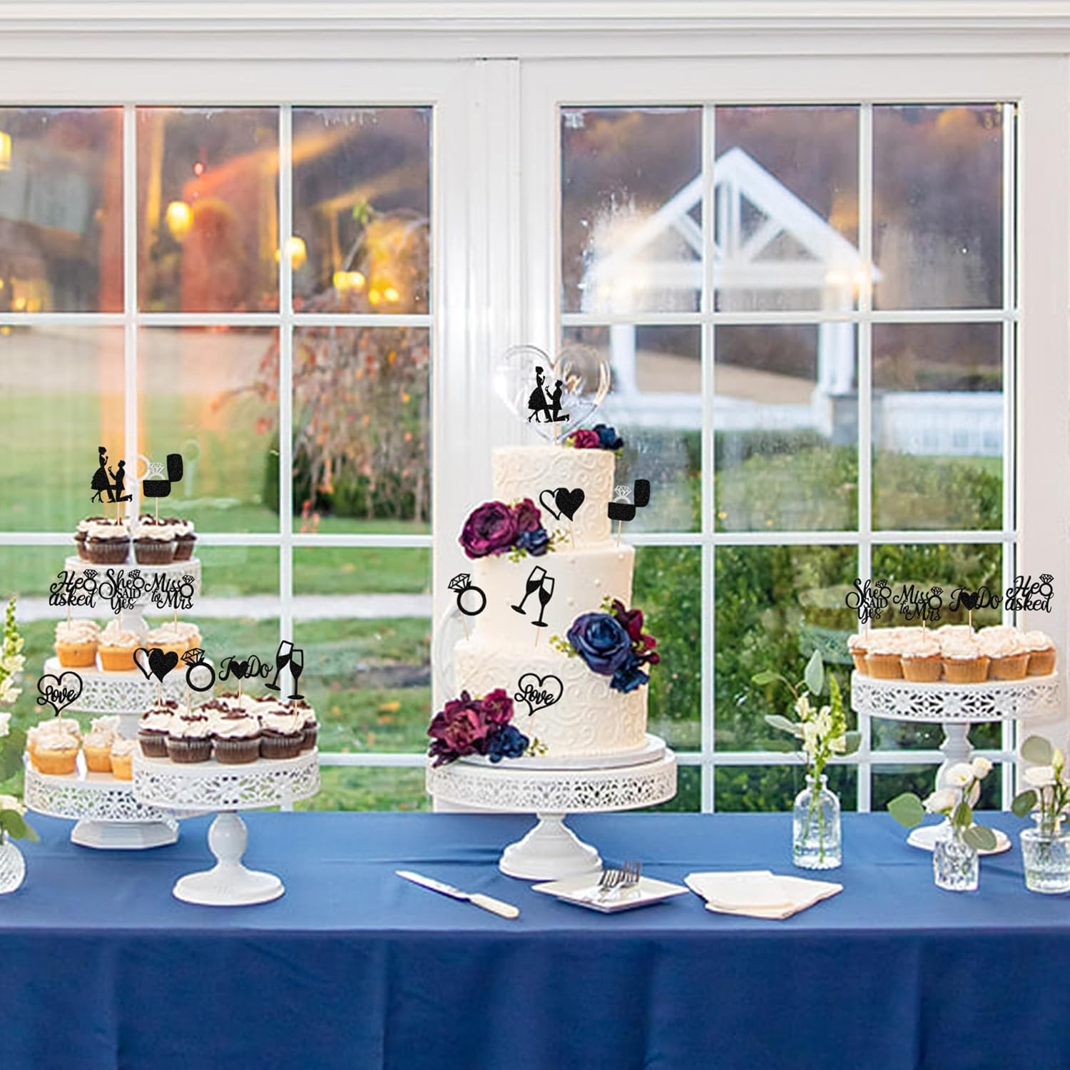 • No Assembled Required ! These he asked she said yes cupcake toppers are assembled in advance,so you don't need to DIY it by yourself,which can save you time and effort during the process of party preparation; You can insert them into your cake or cupcakes and adjust the suitable height to show better effects.