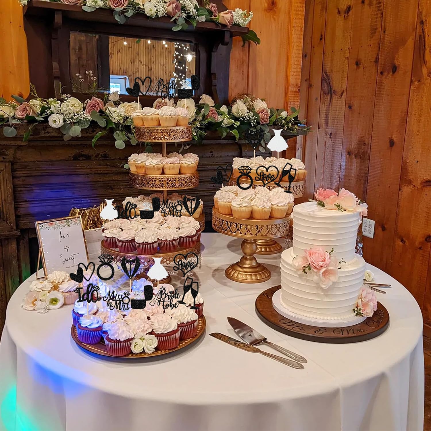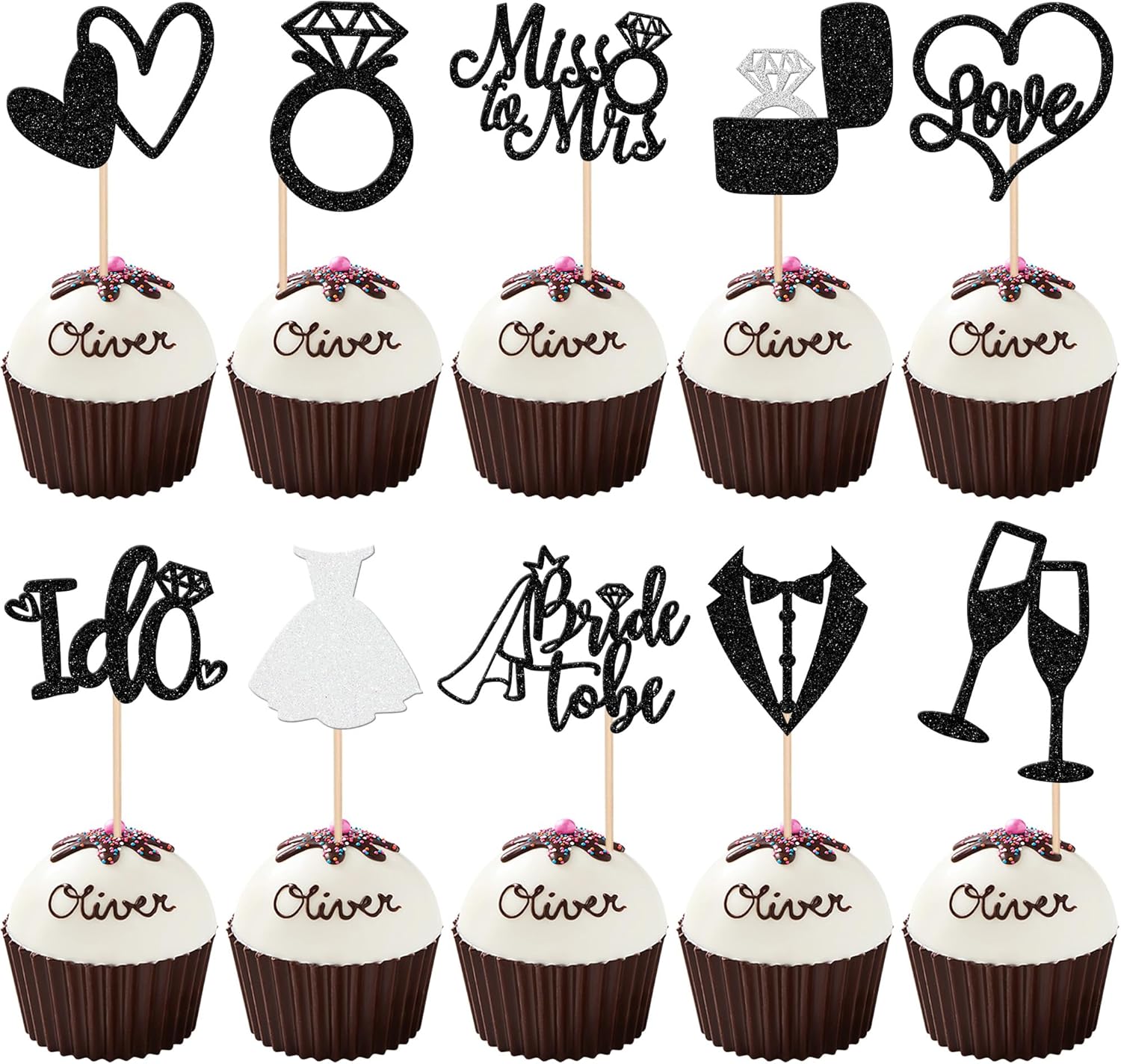 30 PCS Bride to Be Cupcake Toppers Glitter Miss to Mrs I Do Love Heart Ring Cupcake Picks Wedding Bridal Shower Cake Decorations for Wedding Engagement Bachelorette Party Supplies Black
