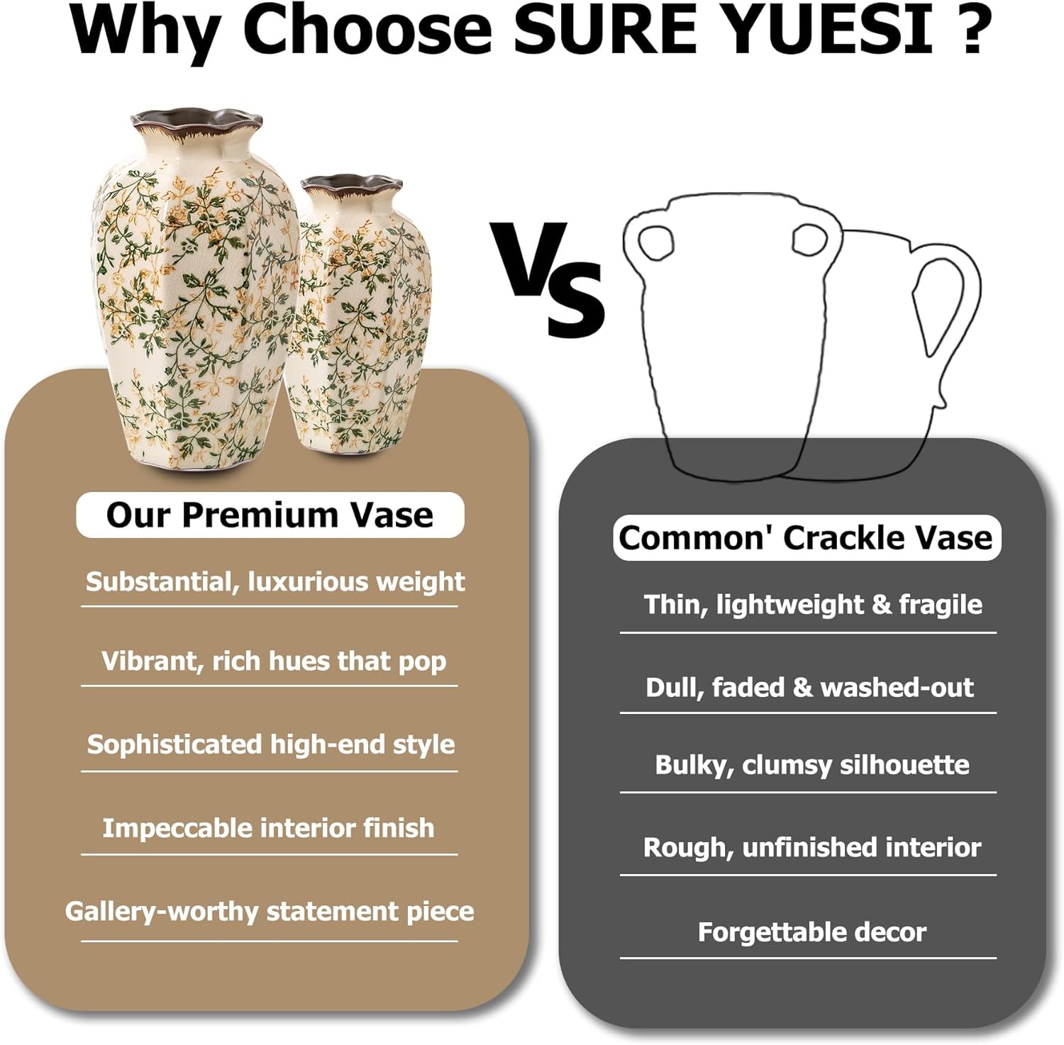 • ELEGANT DESIGN: The SURE YUESI handcrafted pastoral octagonal vase features a unique green and beige design with a vintage-inspired silhouette. This decorative ceramic vase is perfect for adding rustic charm to your home dΓ©cor, making it a standout piece for green vases home decor, farmhouse vase collections, or chinoiserie decor.