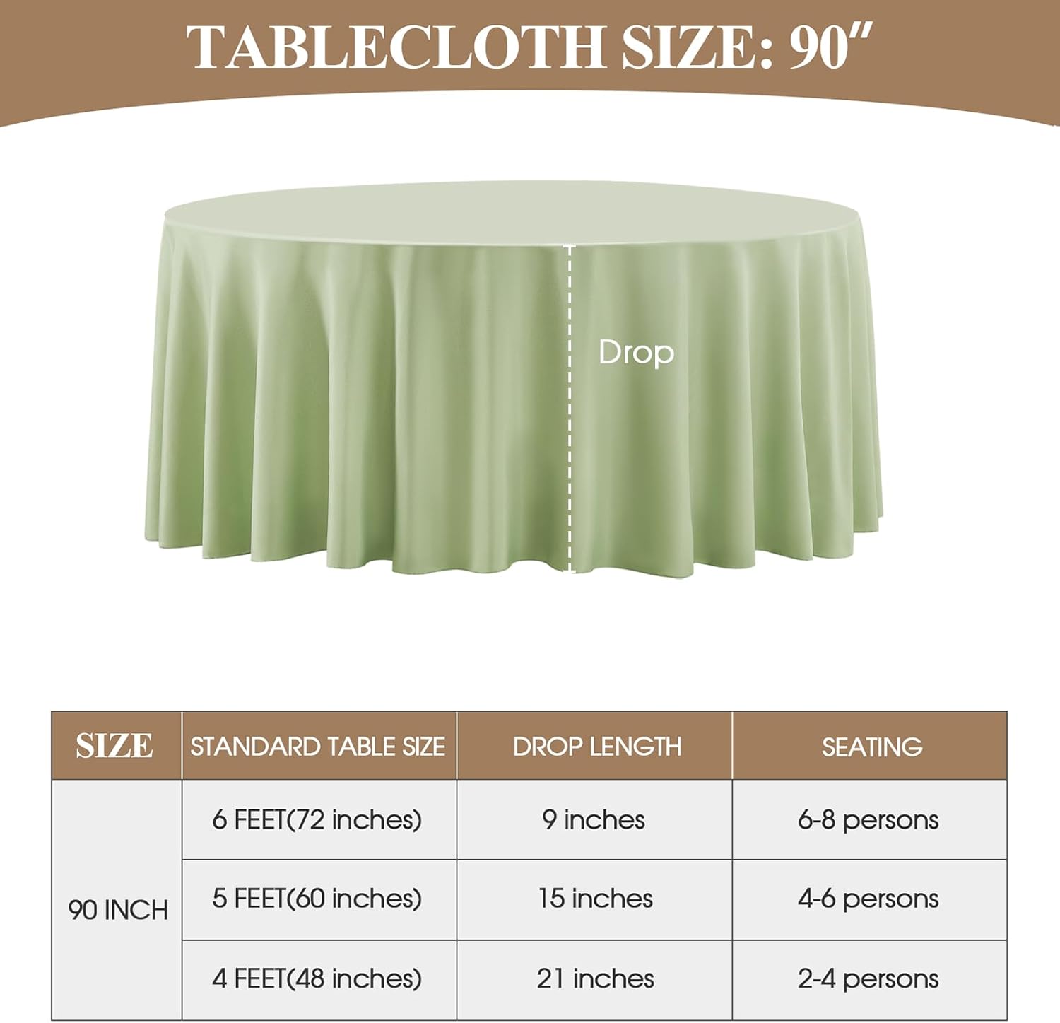 • Suitable Size: This polyester round tablecloth has multiple sizes to choose from, 90, 108, 90, 132 inches, which can meet the needs of tables of different sizes. In order to buy a tablecloth that is more suitable for your table, please measure the actual size of your table before purchasing and refer to our size chart