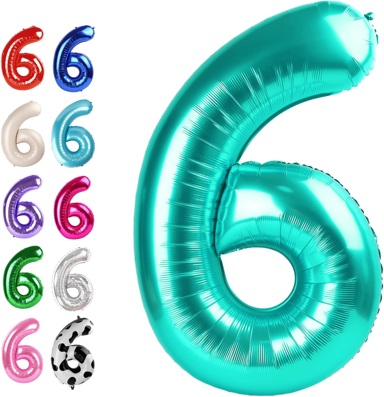 Teal Blue 40 Inch Mylar Foil Number 6 Balloon, Birthday Digital Balloons for 6 16 Boy Girl Party Decorations Supplies,Teal Blue Big Helium Balloon Numbers for 26 36 46 60 Men Women Anniversary