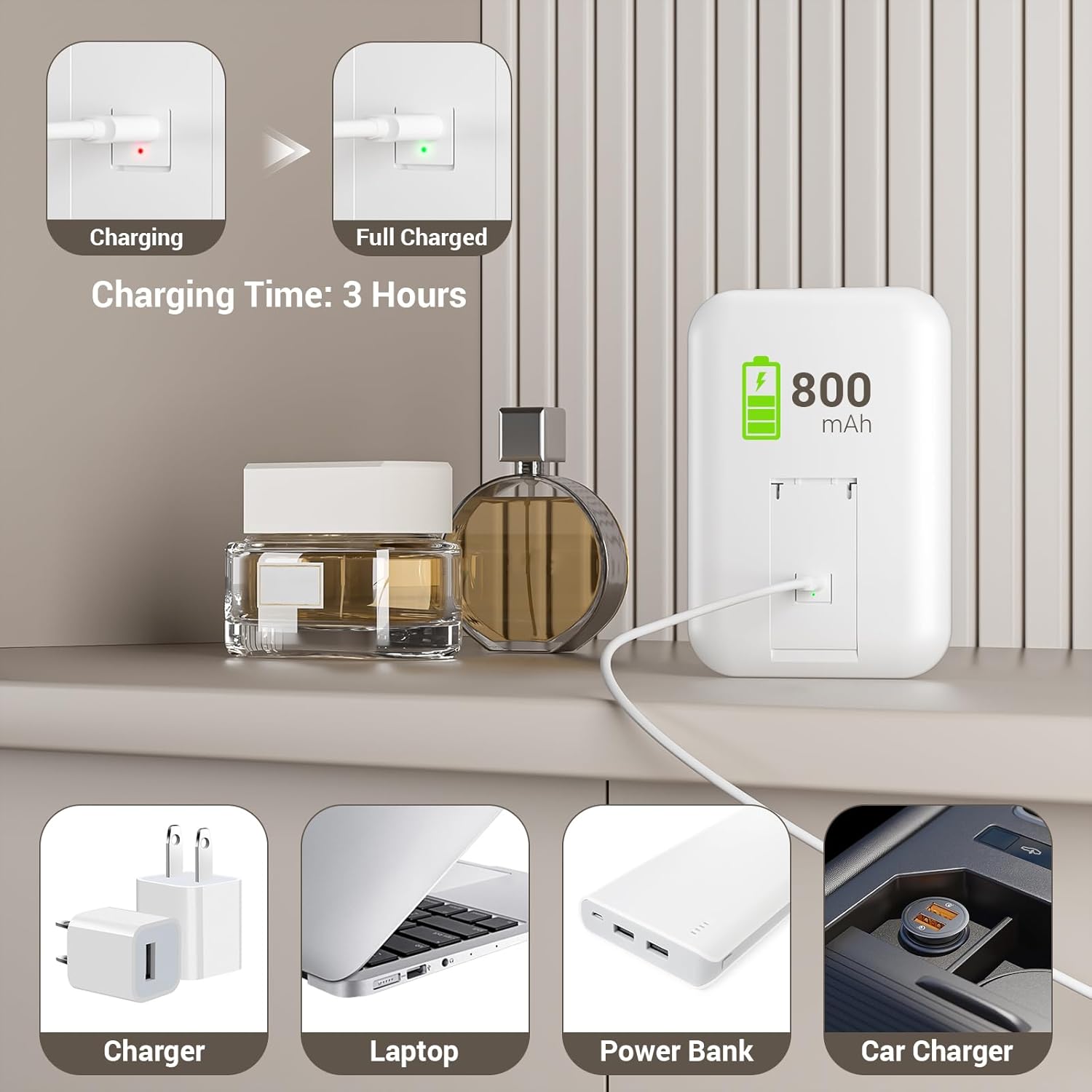 • 【Rechargeable LED Mirror】The small mirror features 32 built-in high-brightness LED beads and an 800 mAh battery. A full charge takes only 3 hours and it can illuminate for 6-54 hours