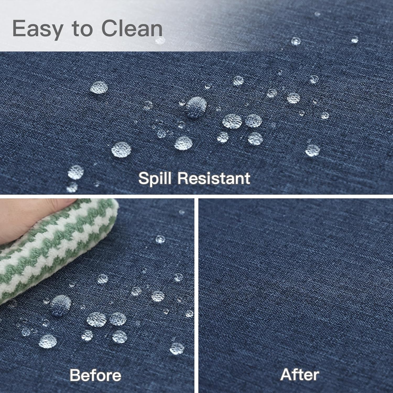 • **Easy to Care: **These tablecloths are spill-proof, water resistant. All liquids bead up for easy cleaning. Machine wash in cold water and tumble dry. Little or no ironing required. DO NOT BLEACH.
