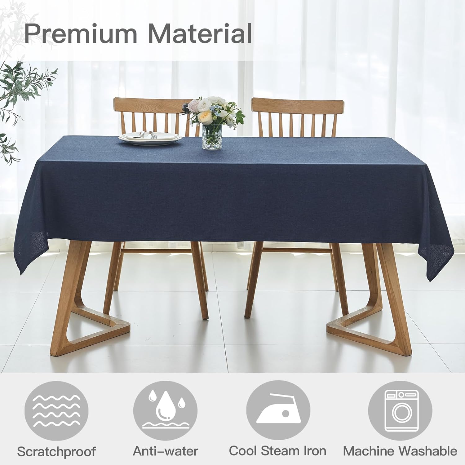 maxmill Linen Textured Rectangular Tablecloth Water Resistant Wrinkle Free Spill-Proof Stain Proof Dining Room Table Cloth Decoration Banquet Party Wedding Holiday Dinner, 52 x 84 Inch, Navy Blue