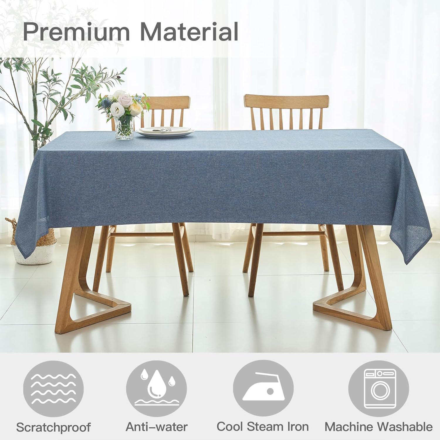 maxmill Square Linen Tablecloth Water Resistance Antiwrinkle Spillproof Stain Proof Fabric Table Cloth, Decorative Fabric Table Cover for Banquet Party Event Holiday Dinner, 70 x 70 Inch, Demin Blue