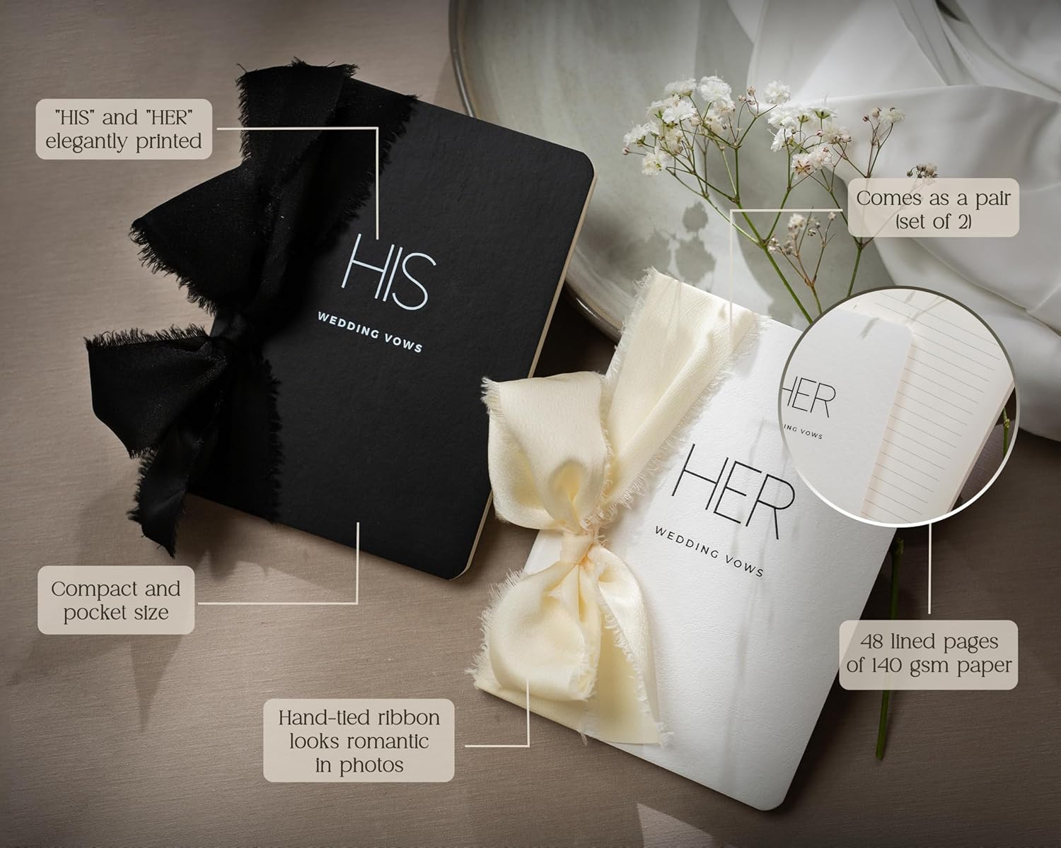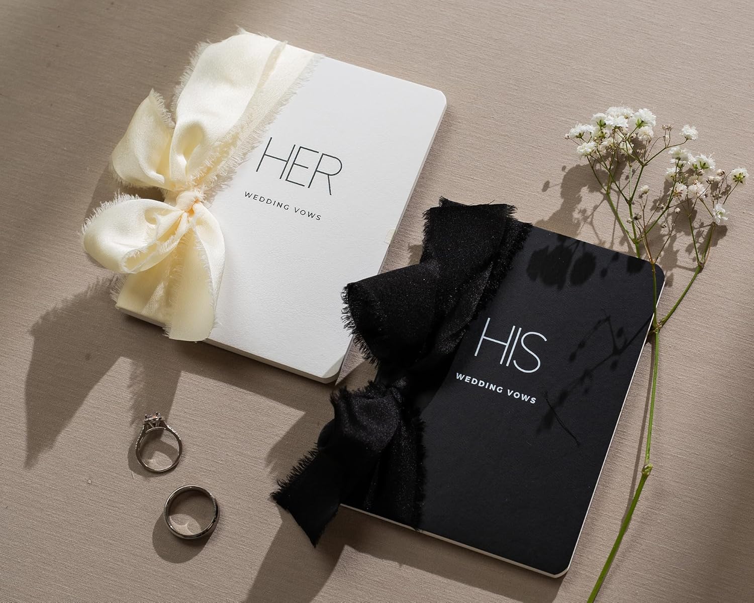 • Each vow book in our set measures 5.625 x 4 x .5 inches, making them pocket-sized for easy carrying. Crafted from high-quality materials, these softcover vow books offer durability with a sophisticated finish. The flowy ivory ribbon adds a touch of romance and softness against the texture of the book.