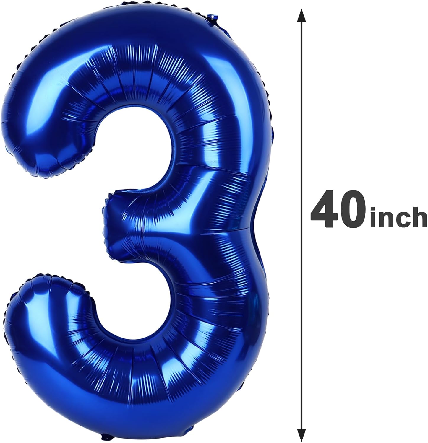 40 Inch Night Blue 3 Large Number Balloon, 3 13 23 30 33 36 Night Blue Birthday Party Decorations, Number Three Foil Balloons for Anniversary Party Graduations Celebration Supplies