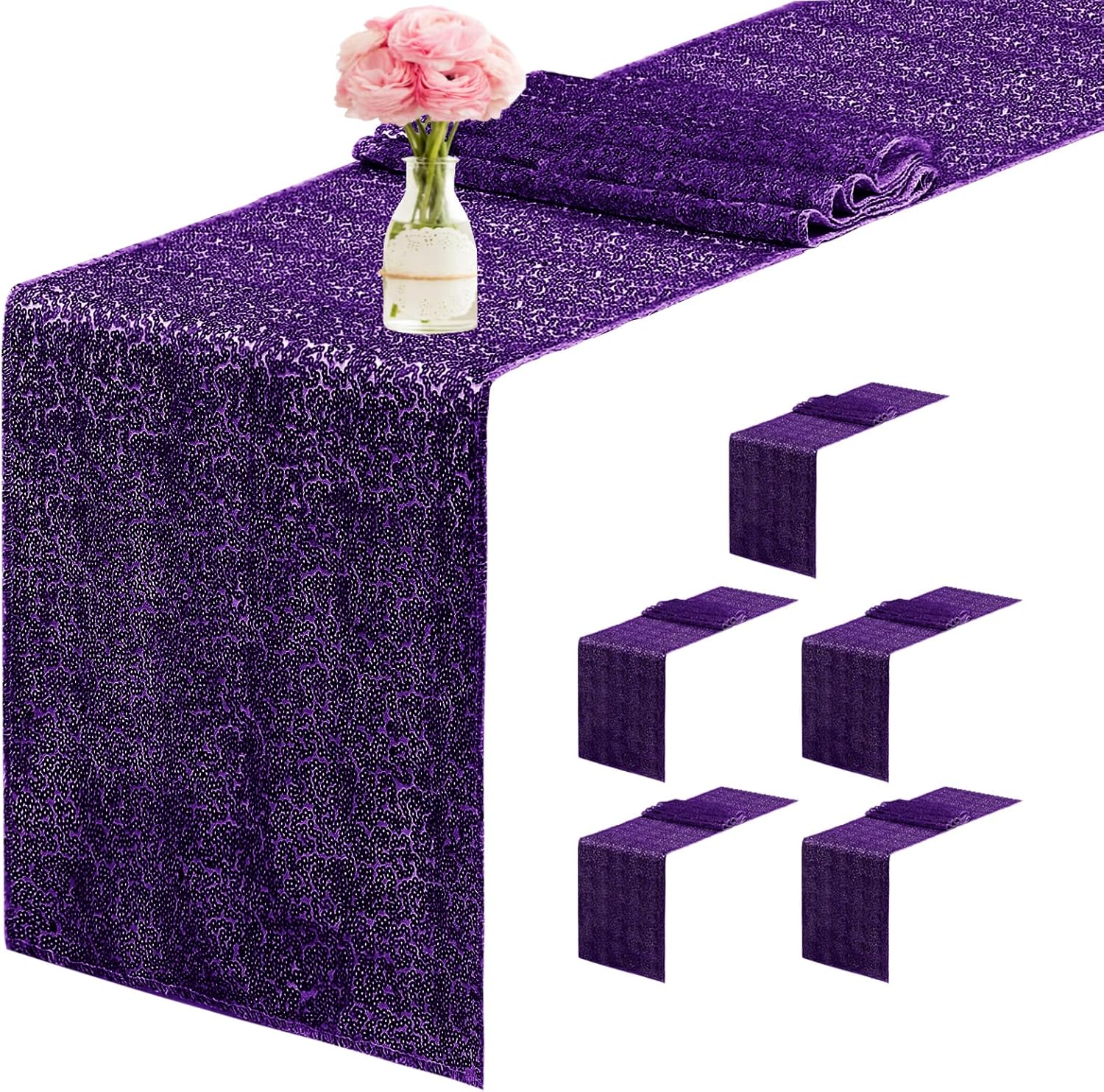 6 Packs 12 x 72 inches Sequin Table Runner, Purple Glitter Table Runner for Birthday Party Supplies Wedding Engagement Baby Shower Holiday Celebration Event Decorations
