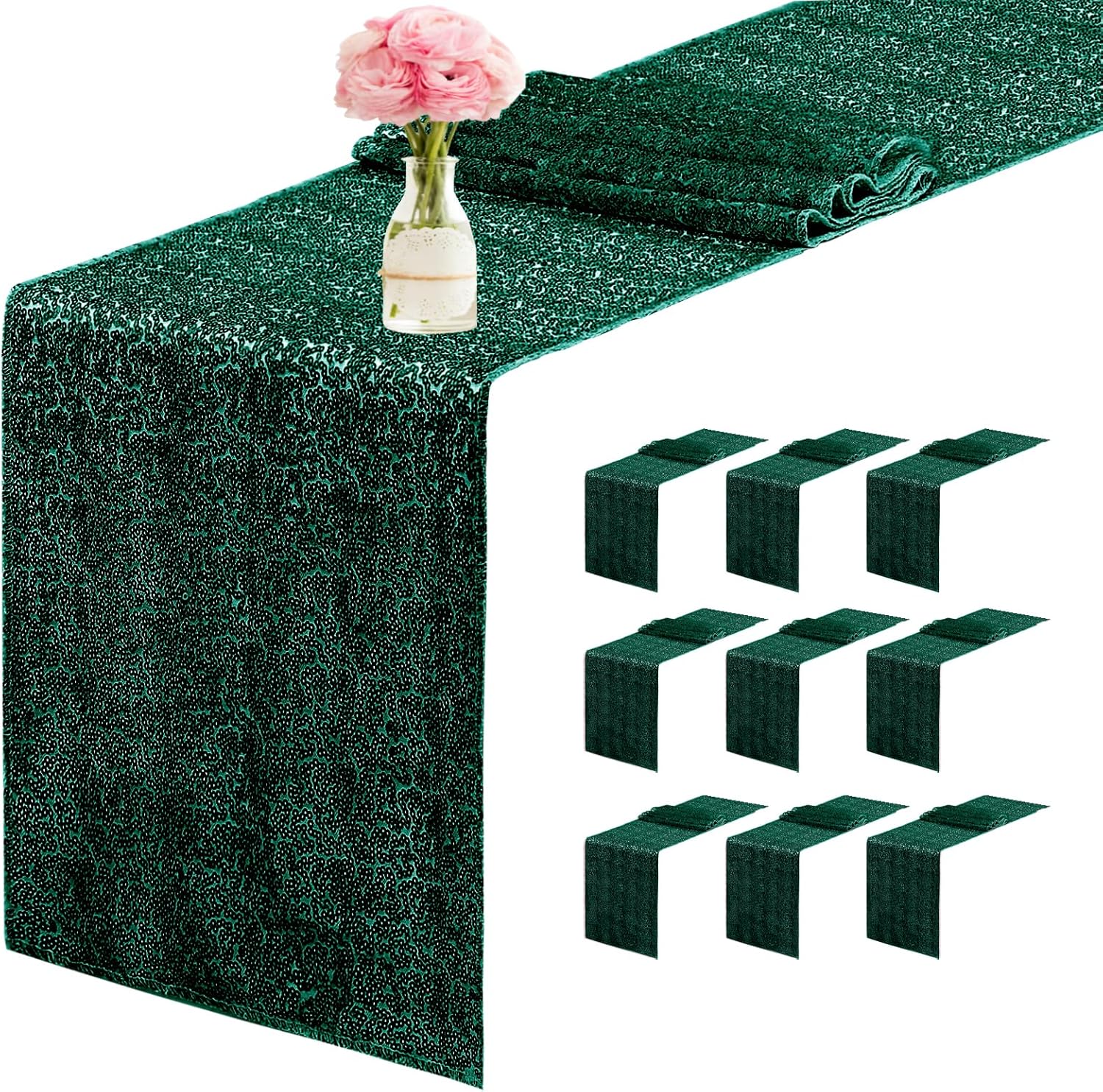 10 Packs 12 x 72 inches Sequin Table Runner, Hunter Green Glitter Table Runner for Birthday Party Supplies Wedding Engagement Baby Shower Holiday Celebration Event Decorations