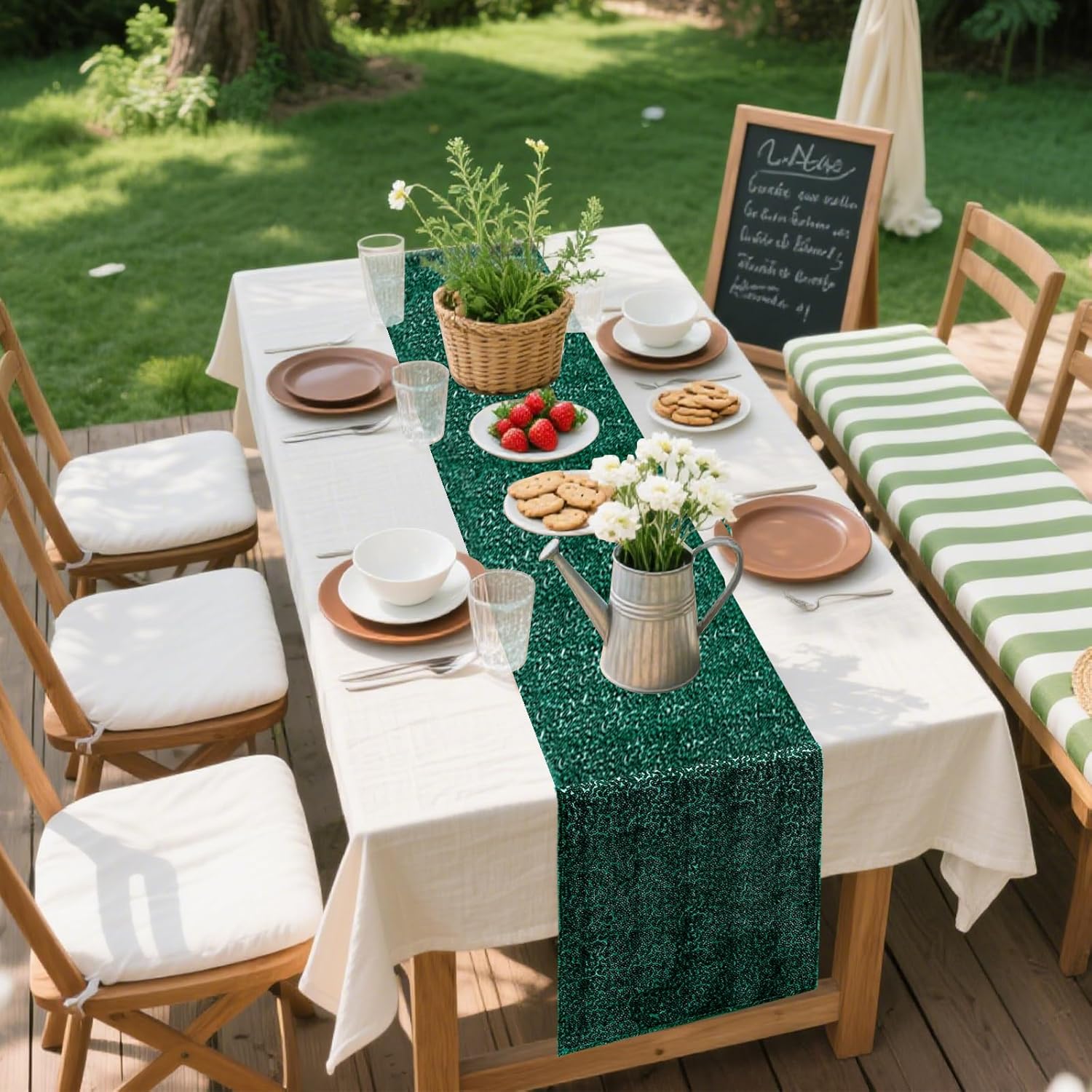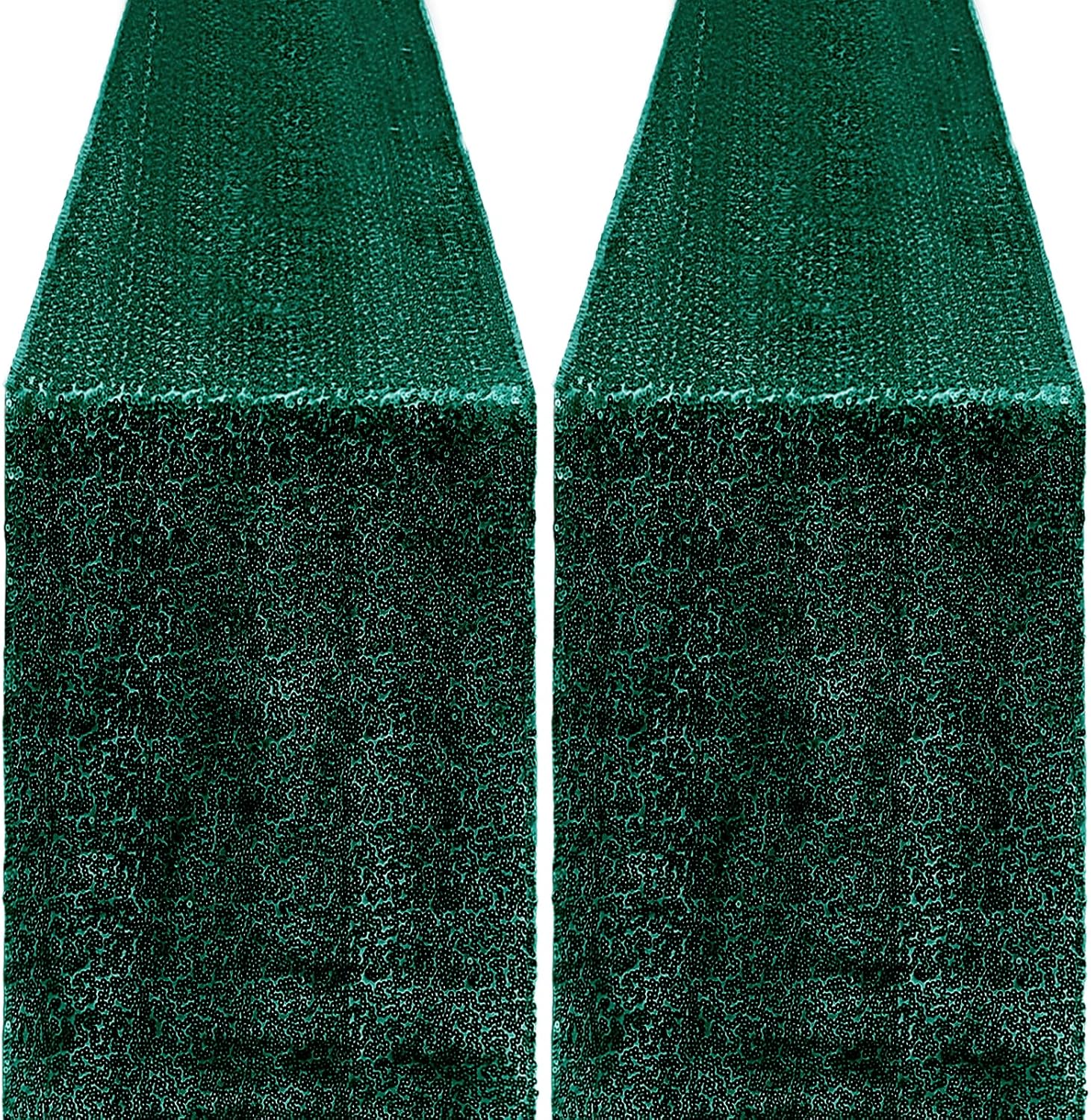 2 Packs 12 x 72 inches Sequin Table Runner, Hunter Green Glitter Table Runner for Birthday Party Supplies Wedding Engagement Baby Shower Holiday Celebration Event Decorations