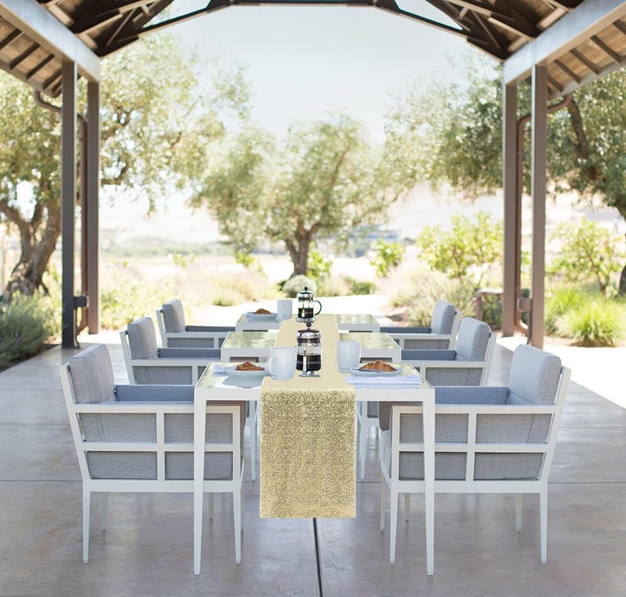 10 Packs 12 x 72 inches Sequin Table Runner, Champagne Glitter Table Runner for Birthday Party Supplies Wedding Engagement Baby Shower Holiday Celebration Event Decorations
