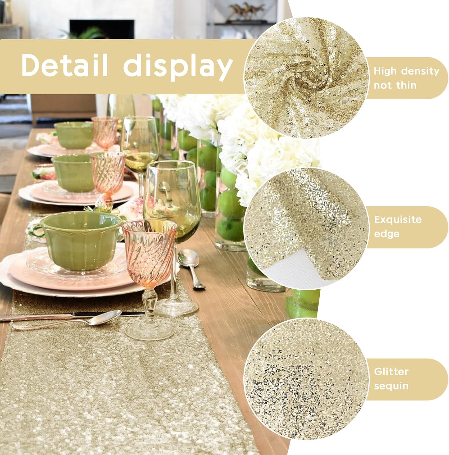 • Exquisite Design: Lightweight and wrinkle-free. These sparkling table runners add charm to your table, giving it a perfect look and enhancing the enthusiastic atmosphere for your event and making your special moments even more memorable.