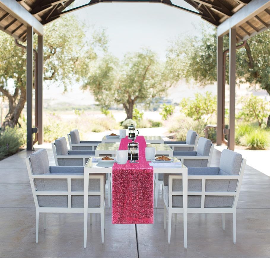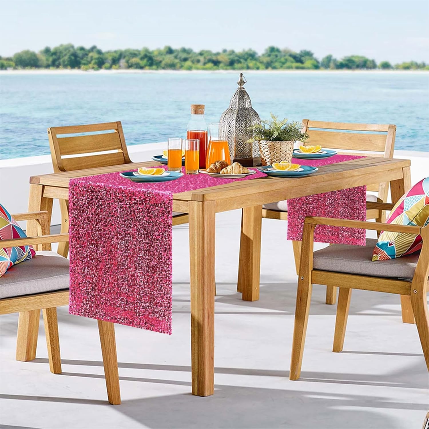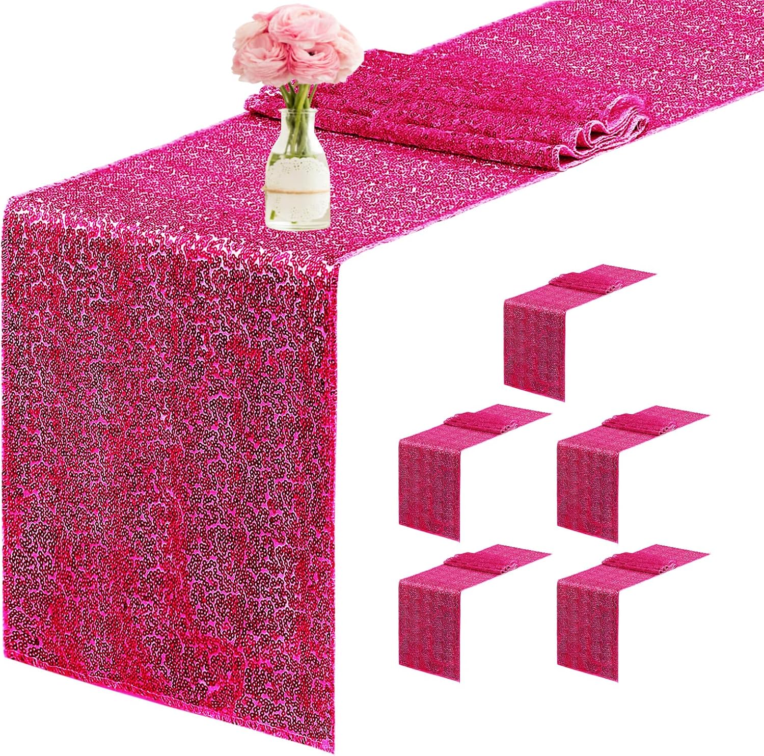 6 Packs 12 x 72 inches Sequin Table Runner, Hot Pink Glitter Table Runner for Birthday Party Supplies Wedding Engagement Baby Shower Holiday Celebration Event Decorations