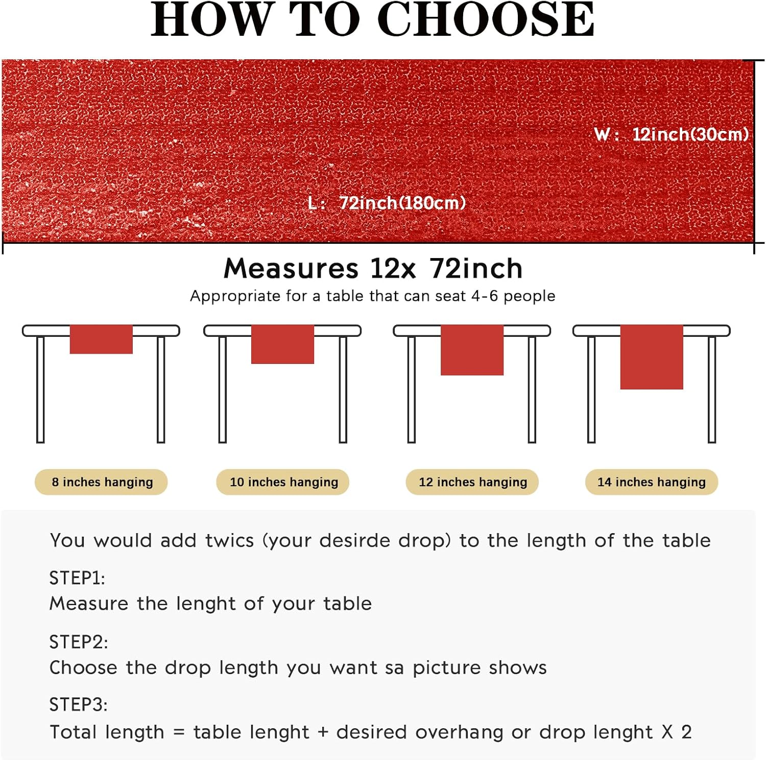• Package Include: Each sequin table runner measures 12" x 72", total 2 pieces, perfect for a table that seat 4-6 people. The sequin table runner is appropriate for rectangle or round tables.