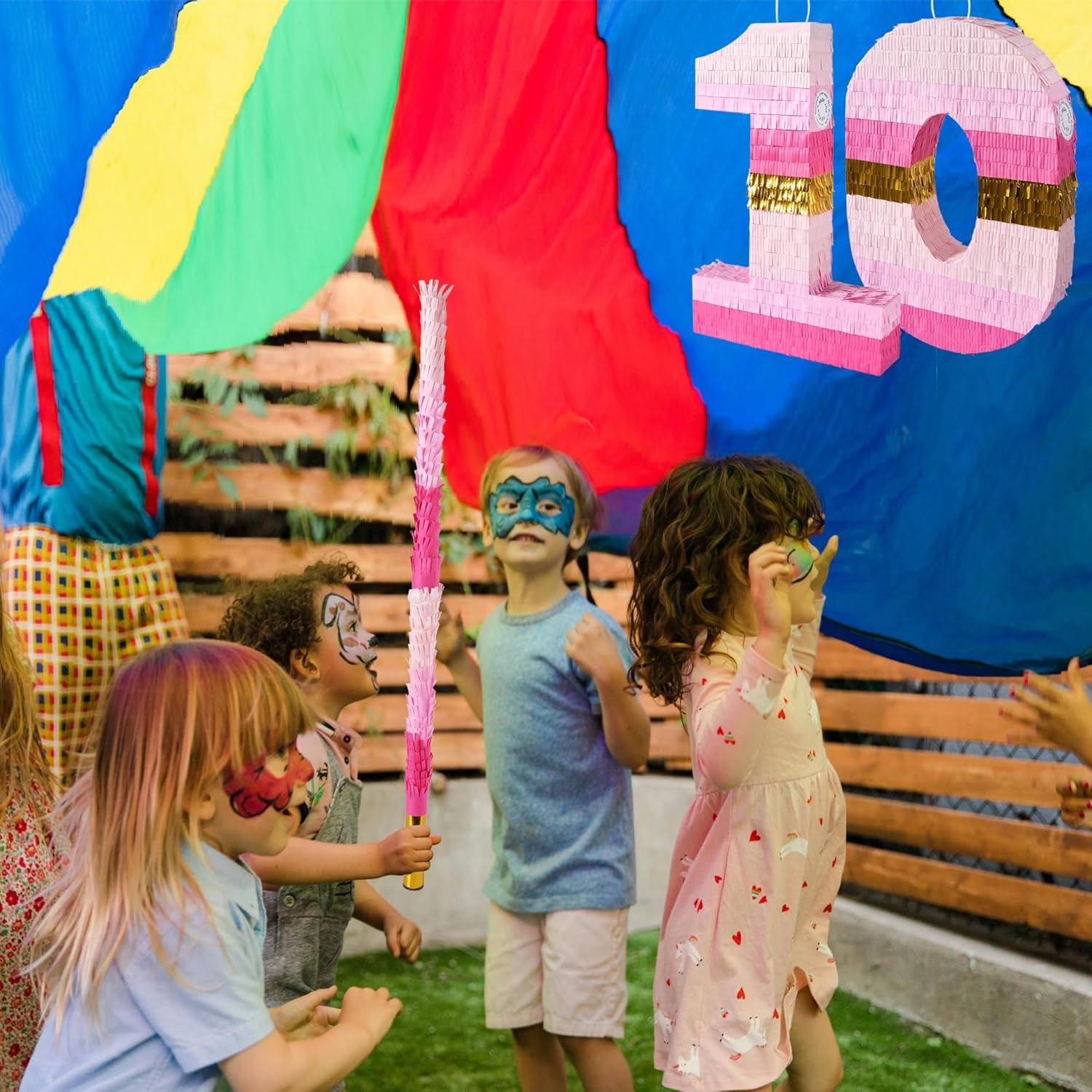 • [Size] Number 0 piñata: 20 x 13.3 x 3 in. Piñata stick: 30 in. The large piñata is more noticeable as a party decoration, the extended stick makes hitting easier and the stick is reusable.