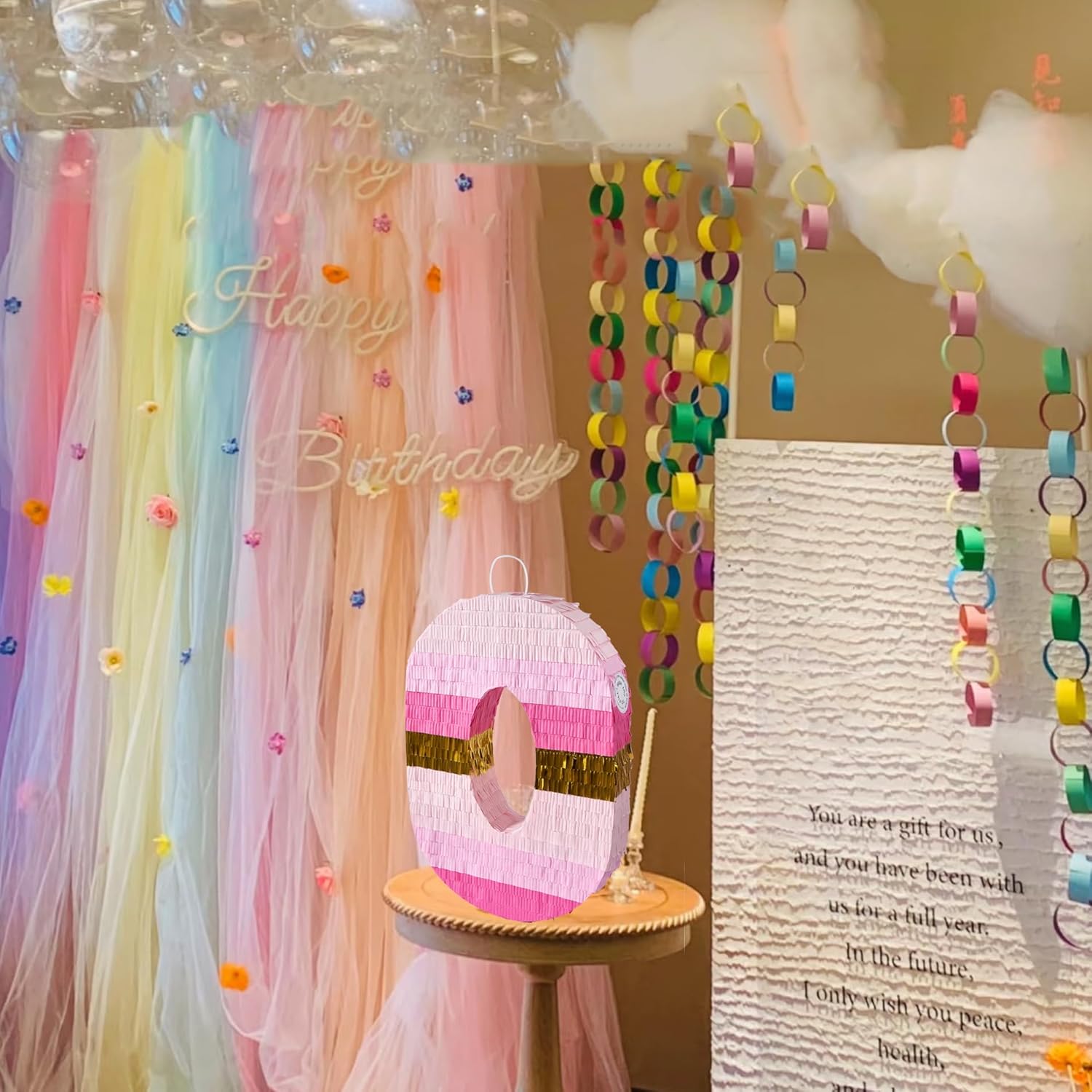 PCFING 20 Inch Number 0 Piñata Pink Gold with 30 Inch Piñata Stick Blindfold Confetti for Boys Girls Adults Birthday Party Decorations, Anniversary Celebration, Fiesta
