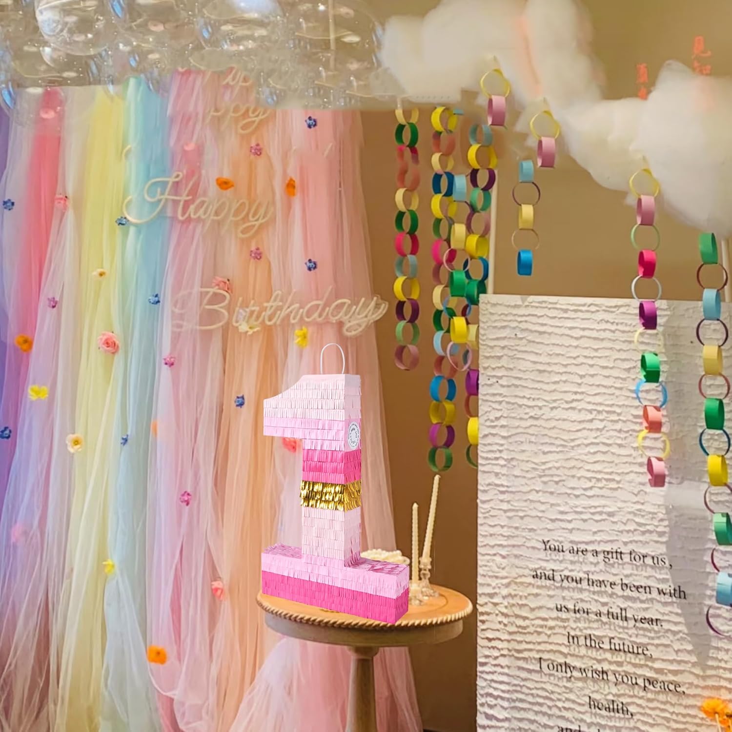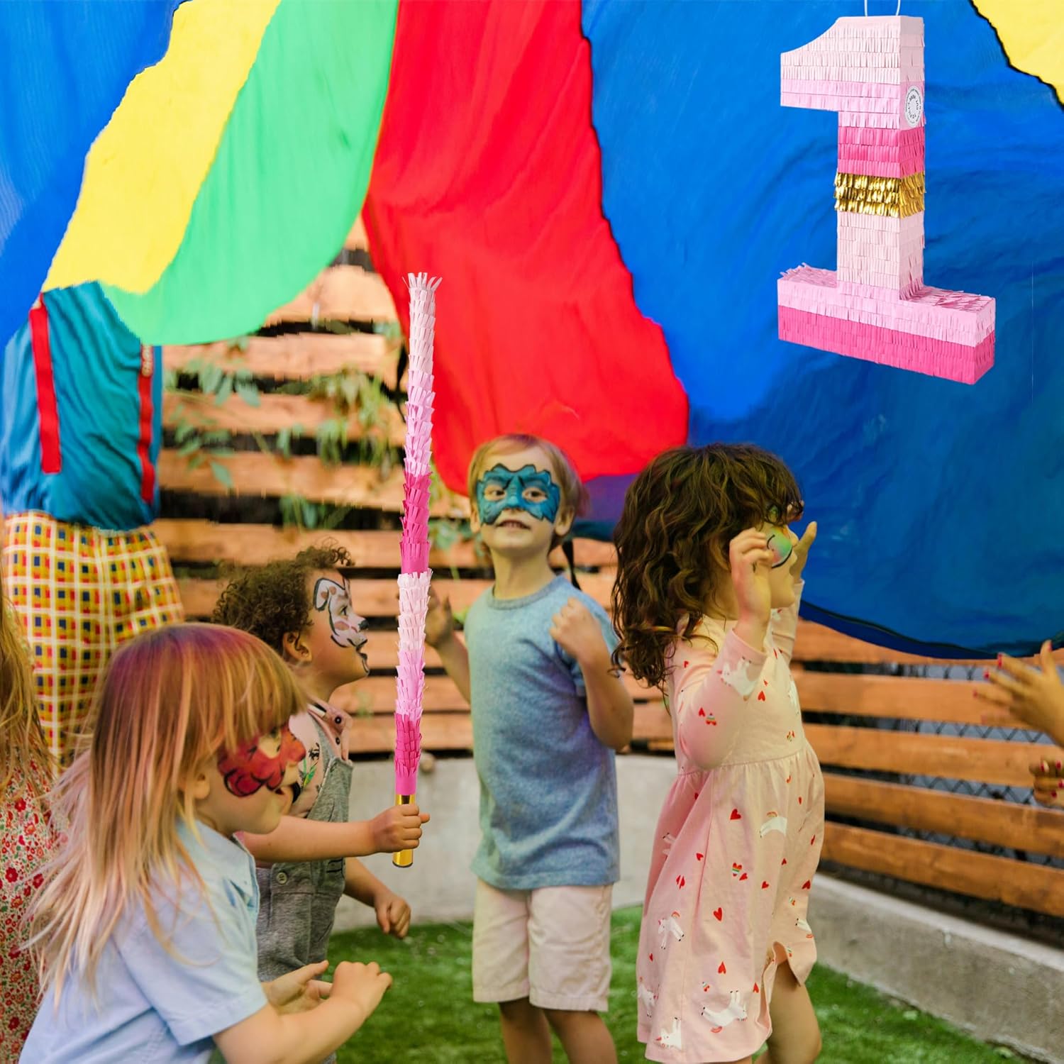 PCFING 20 Inch Number 1 Piñata Pink Gold with 30 Inch Piñata Stick Blindfold Confetti for Boys Girls Adults Birthday Party Decorations, Anniversary Celebration, Fiesta