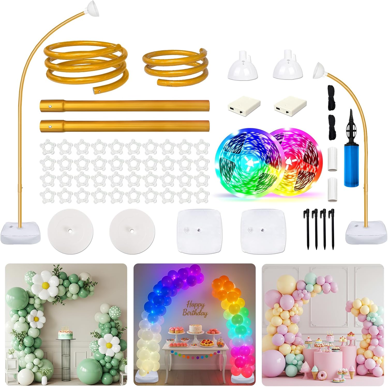 • All-Inclusive Kit Saves Time & Money: No extra purchasesβ€”ever! This complete set includes 2 stands, 2 weighted bases, 40 balloon clips, 4 stakes, ropes & a pump. Assembles in under 10 minutesβ€”no frustration, just fast, professional results. More value than buying pieces separately