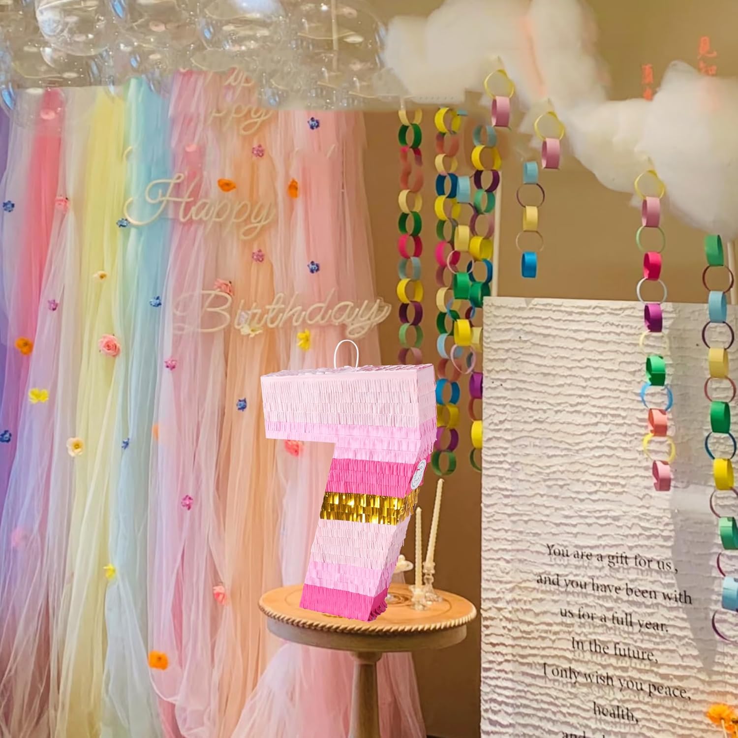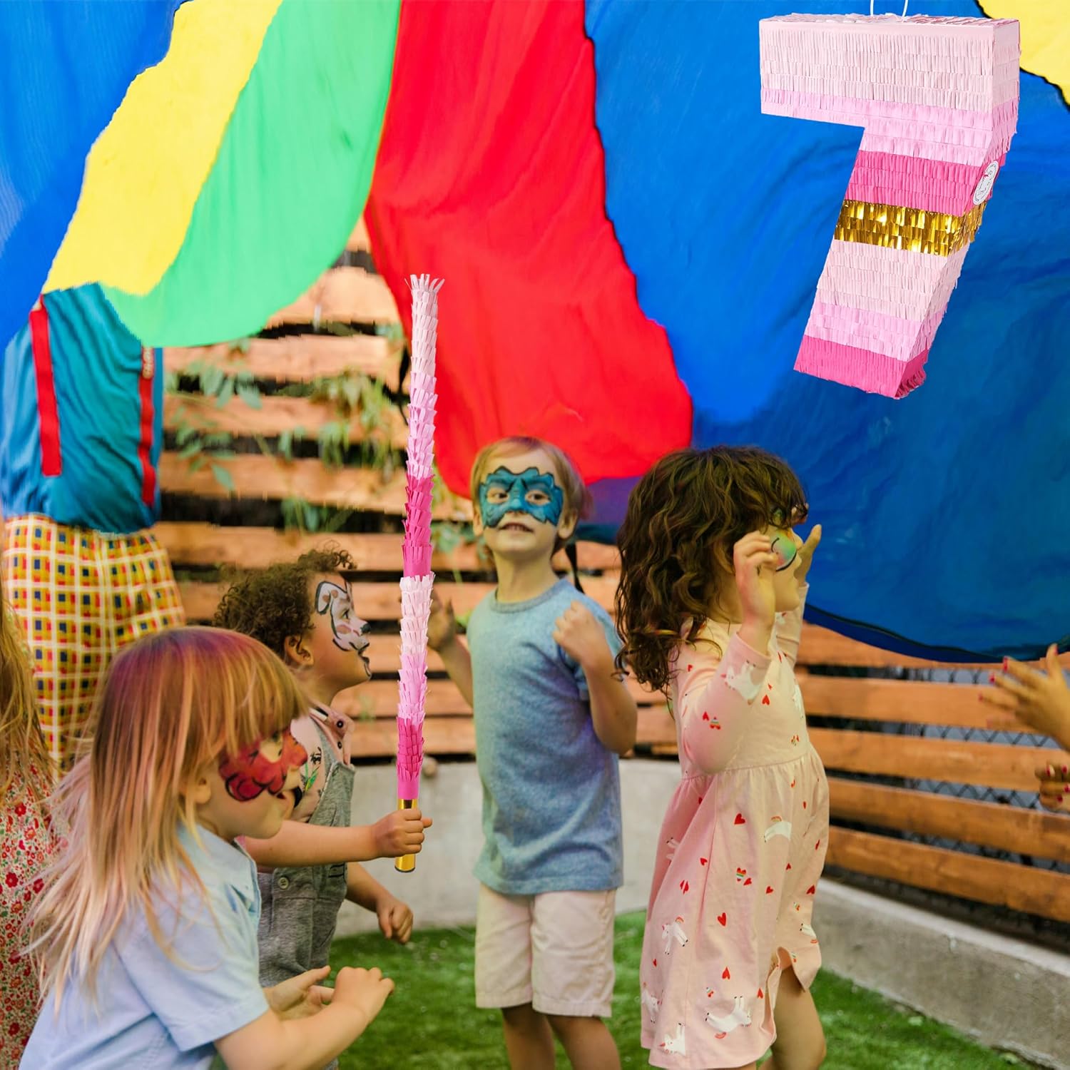 PCFING 20 Inch Number 7 Piñata Pink Gold with 30 Inch Piñata Stick Blindfold Confetti for Boys Girls Adults Birthday Party Decorations, Anniversary Celebration, Fiesta