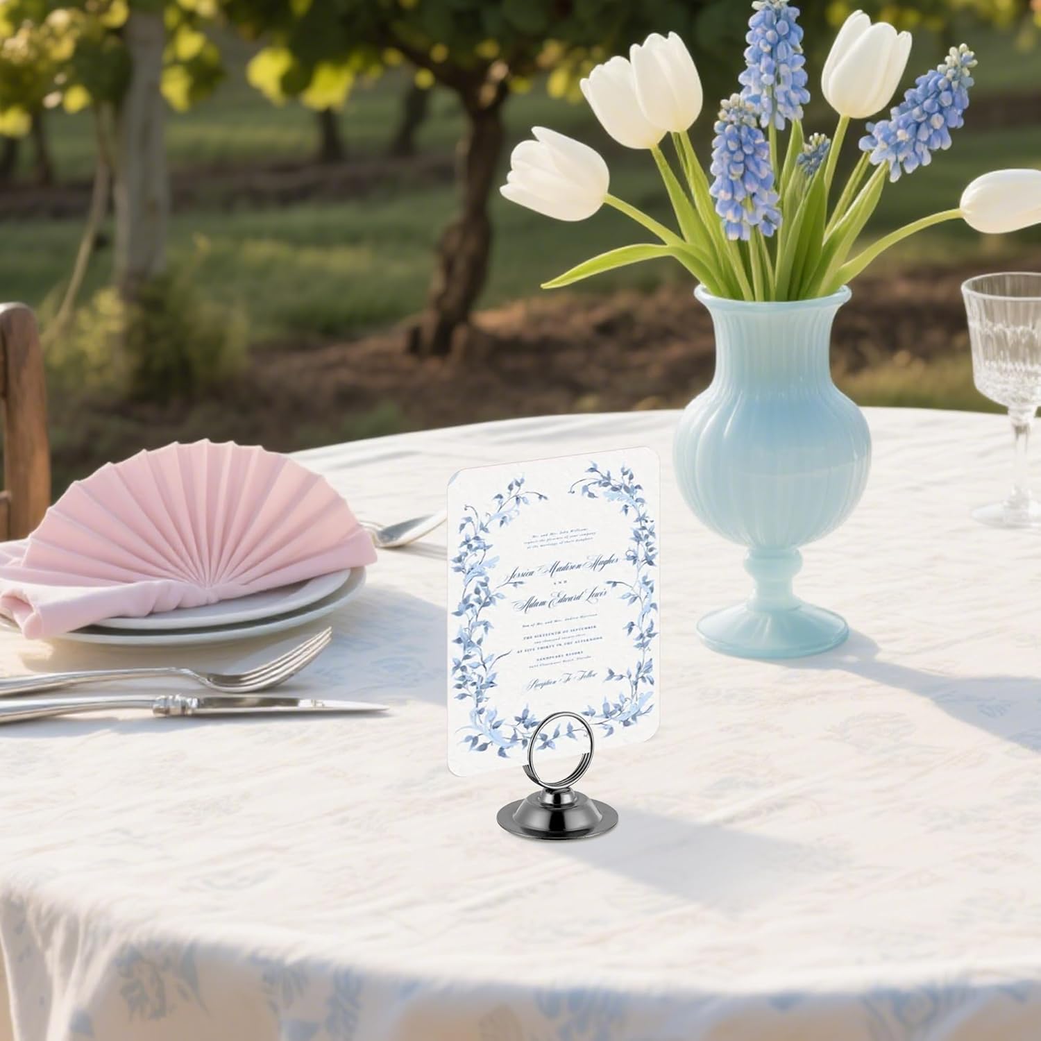 • Heavy and sturdy base: Table number holders have wide, solid and sturdy steel base to keep your cards remain in standing position even if the occasion is in outdoor settings, our finely made table card holders won’t fall over to ruin your elegant presentation