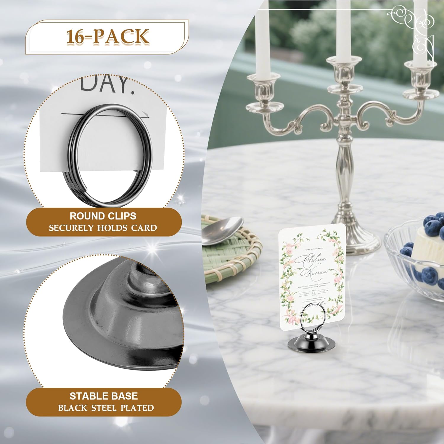 • Package includes: Set include 16 pieces table sign holders, size of photo holder is 2.16 inches, a total of three colors for you to choose, gold, black, silver, you can choose according to your occasion need