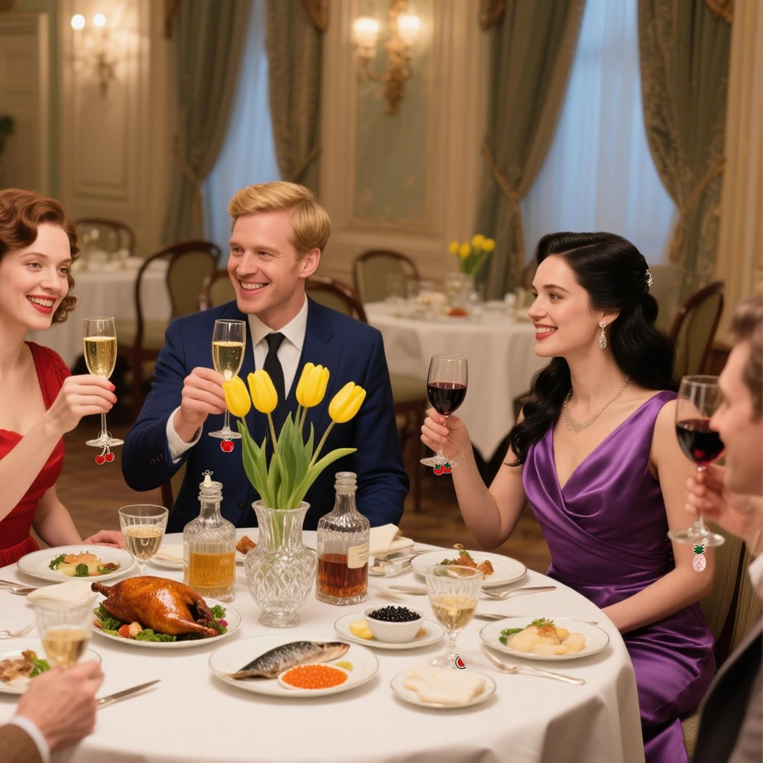 • Easy to Use: These wine charms for stem glasses feature a simple clasp design. You just need to open the clasp, hang the charm on the stem of the wine glass, and then close the clasp. With a charm ring diameter of approximately 1 inch, our wine glass charm tags are perfect for a variety of occasions. They will be a good helper to different parties