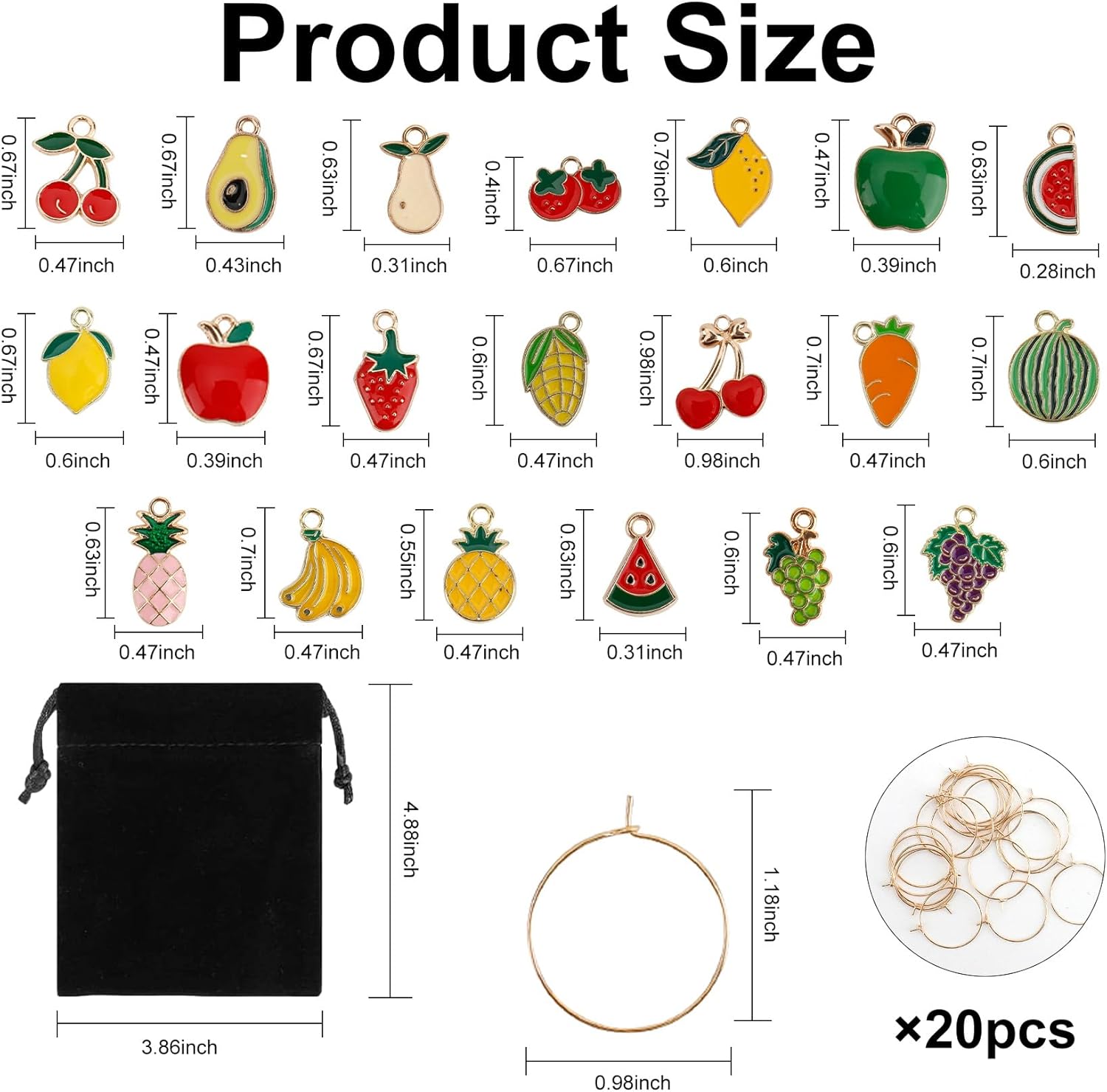 • Package Content: You will receive 20 pieces colourful fruit patterns charms and 1 storage bag. 24 wine glass charms of different patterns are combined with some classic elements of fruits, such as lemon, apple, cherry, avocado, strawberry, watermelon, banana, pineapples, grapes and so on. These cute wine glass tags are sure to bring more joy to your party time