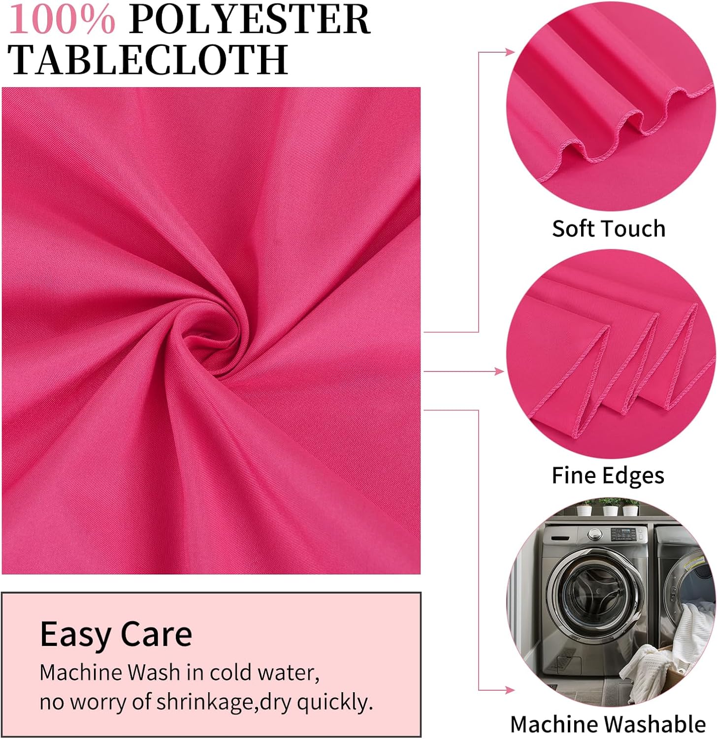 • 【Exquisite Workmanship】: REWOMC tablecloth is made by skilled artisans. The hot pink round tablecloths are designed with folded borders and fine stitching to ensure an elegant look and no loose threads. Our color-fast dyes stay vibrant and true, and will not fade or transfer during washing or use. Can be withstand repeated use and frequent laundering.