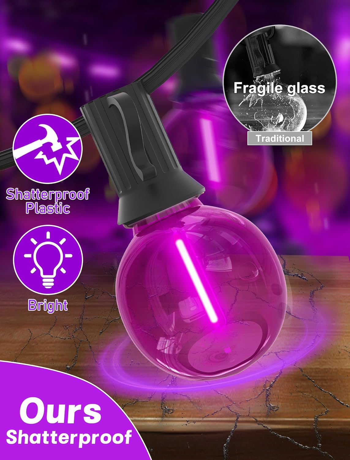 • End-to-End Expandable: Each set of purple lights string comes with male and female plugs, and can connect up to 28 sets (up to 700 bulbs). The maximum length of the light string is 700 feet, which can easily decorate various scenes and cover large areas