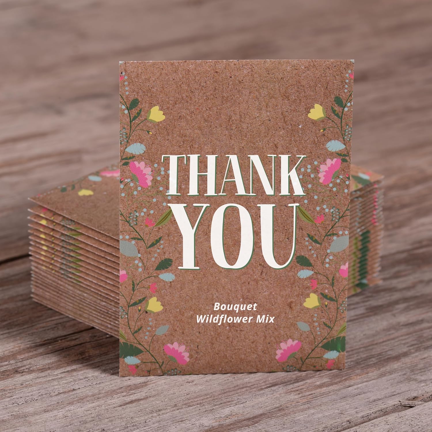 Bentley Seed Co. Thank You Natural Brown - Bouquet Wildflower Seed Packets - 25 Seed Packs - Perfect Eco-Friendly Gift for Gardeners & Friends - Non GMO Seeds