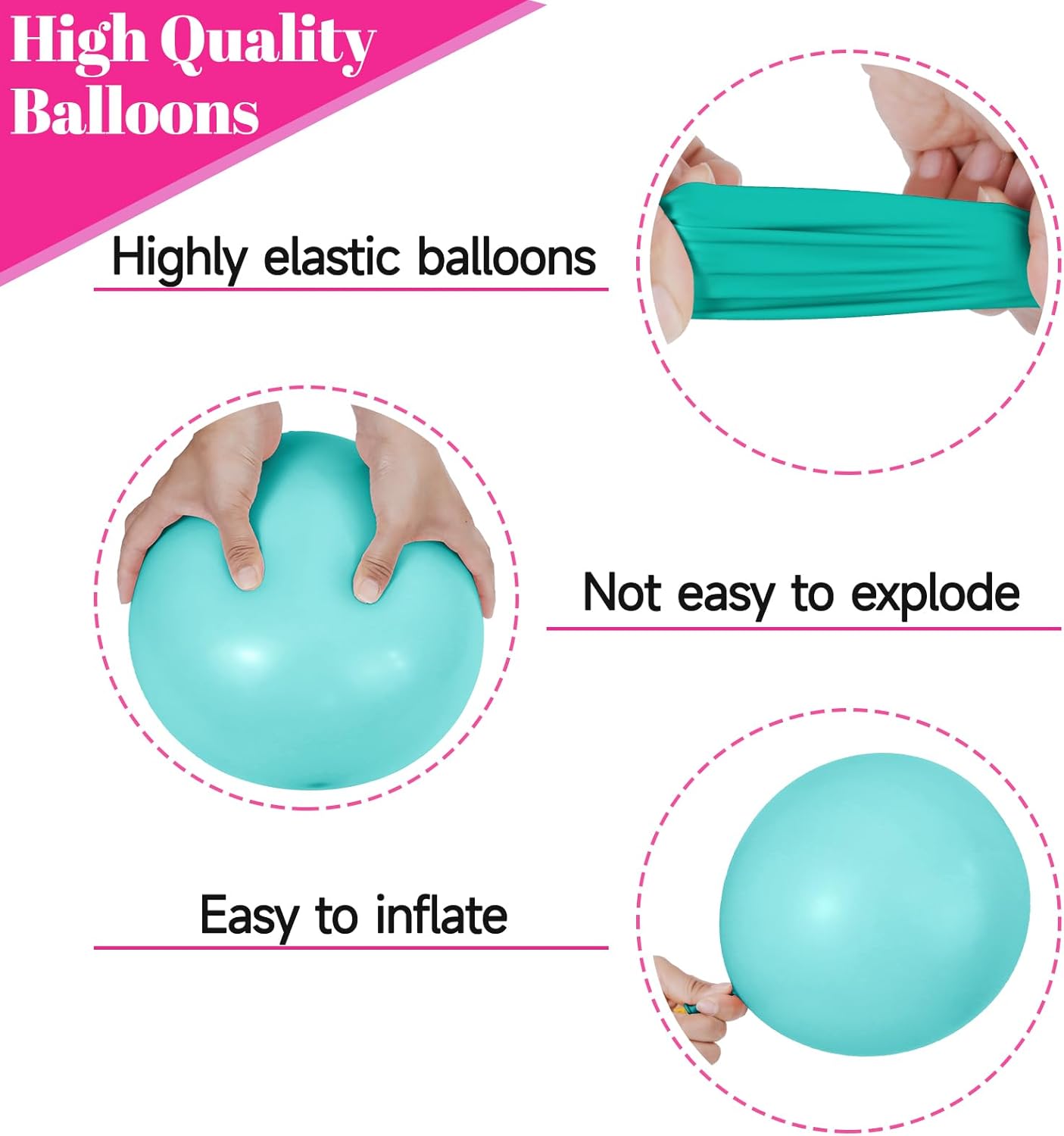• Simple balloon pack: Contains 68 pieces of 12-inch latex balloons, including 8 metallic purple balloons, 8 hot pink teal mixed confetti balloons, 13 teal balloons, 13 purple balloons, 13 yellow latex balloons, and 13 hot pink balloons.