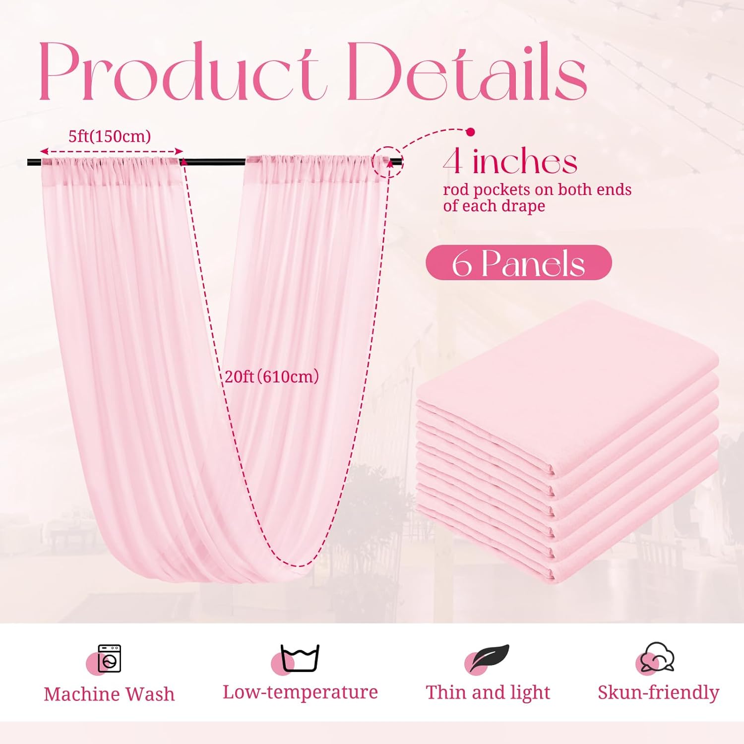 6 Panels Pink Ceiling Drapes for Wedding, 5ftx20ft Ceiling Drapes Cheesecloth Sheer Fabric Curtain Wedding Arch Draping Fabric Romantic Ceilings Decorations for Weddings Party Ceremony Stage