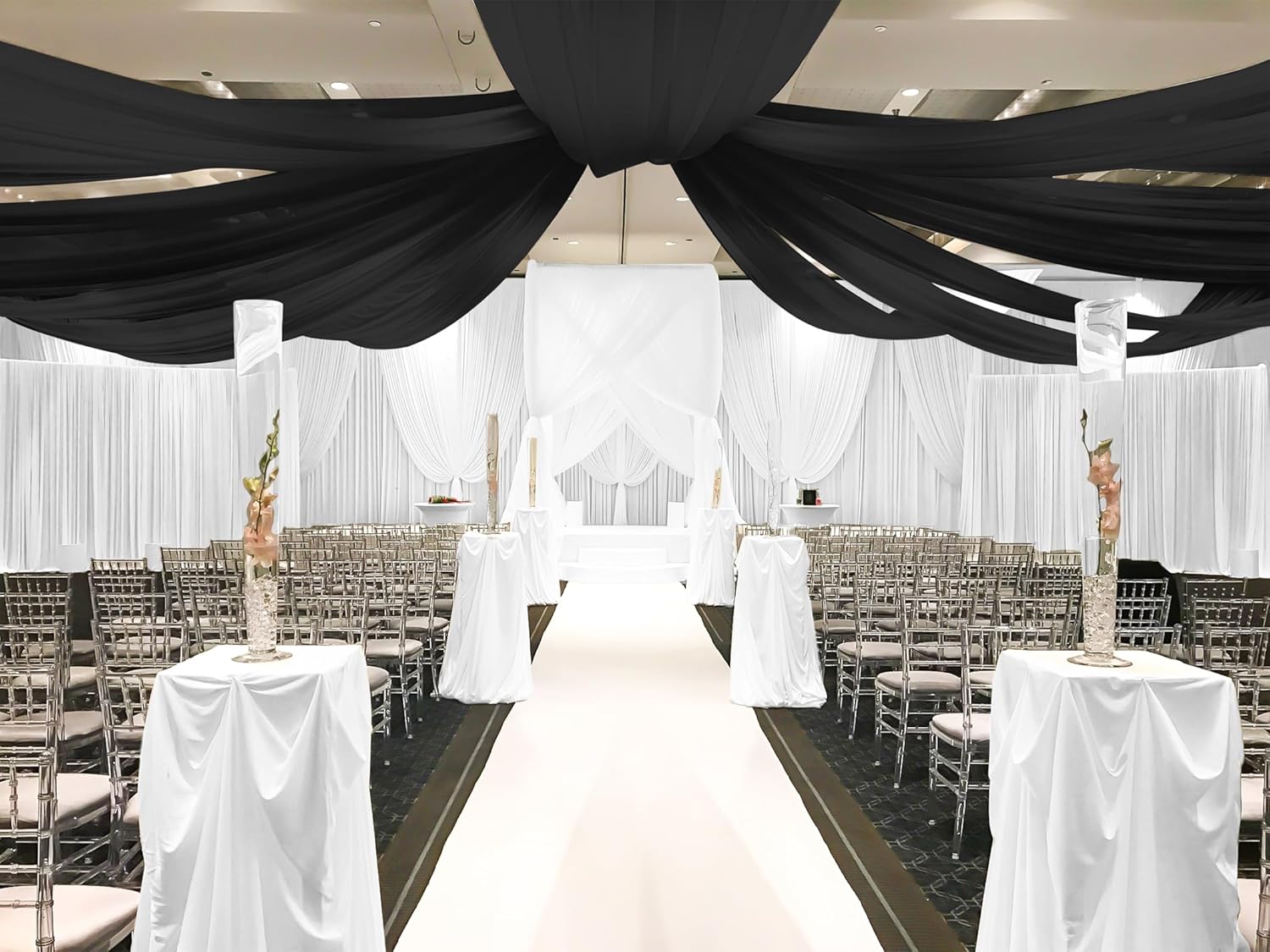 • 【Package Includes】The package will include 6 panels Black wedding ceiling drapes (Not include stand), each wedding extra long curtain measures 5 feet (60inch)wide x 20 feet(240inch) long.The sufficient quantity can meet your demands for decorating your weddings, parties, receptions.