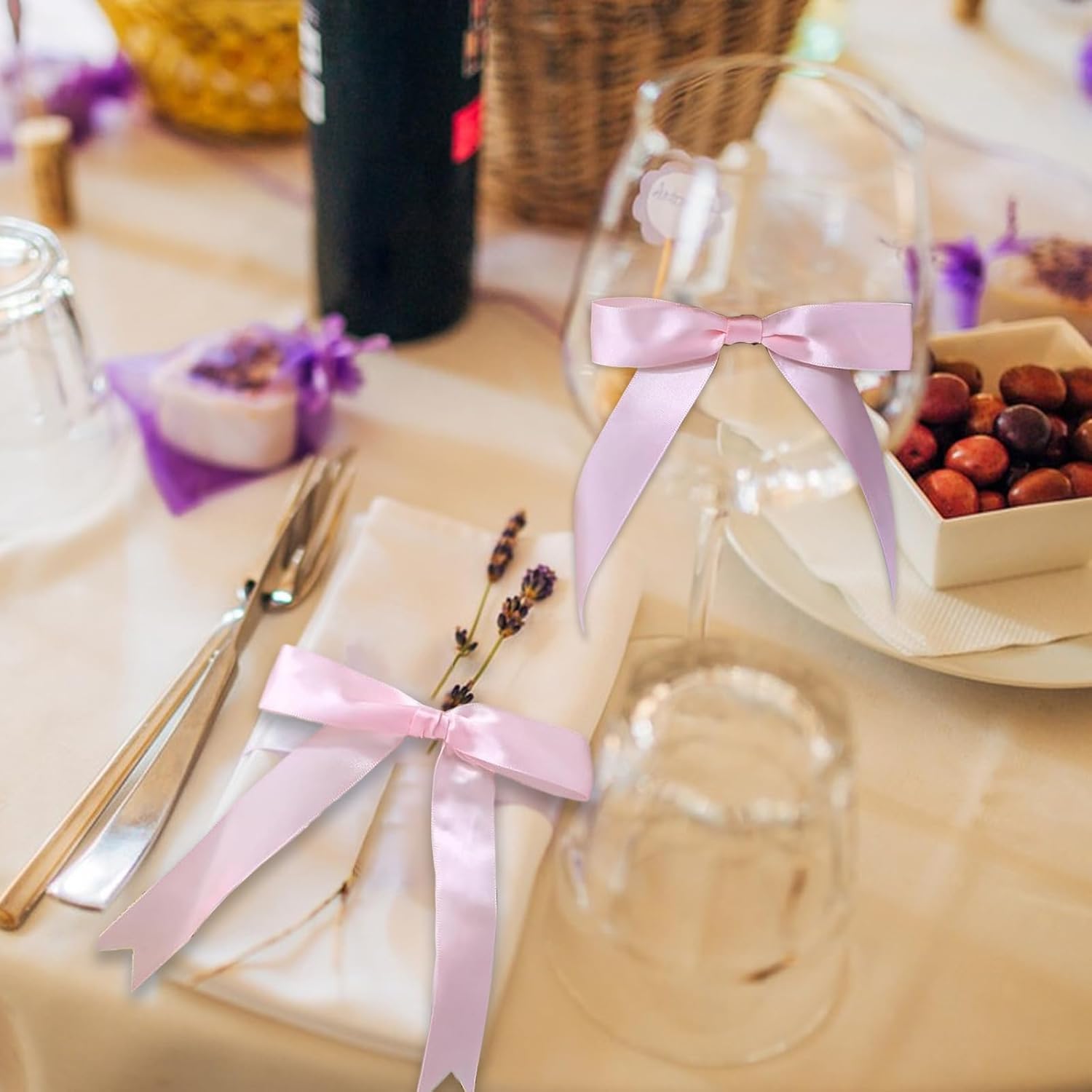 • Pre-tied satin bows with built-in twist ties , which can be easily bound and unlocked, be repeated to use. let you instantly elevate gift bags, treat boxes, or party favors. No messy ribbon tyingโ€”just attach and go! Perfect for last-minute wrapping or bulk crafting projects.