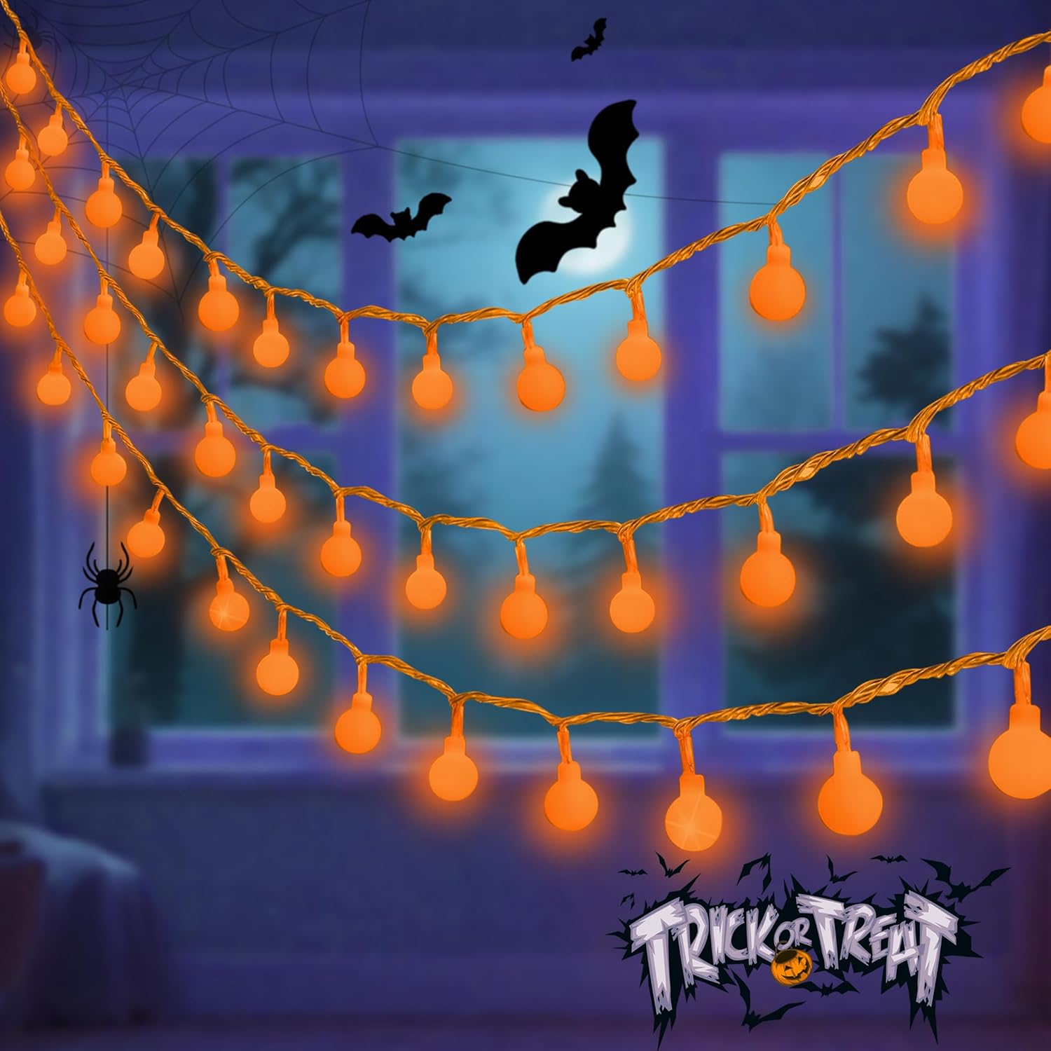 • [End-to-End Connectable]End-to-end connection that allows up to 5 strands connected together to illuminate a wider range. These mini Halloween globe light emit a soft orange glow, adding a festive touch and creating memorable Halloween nights at home
