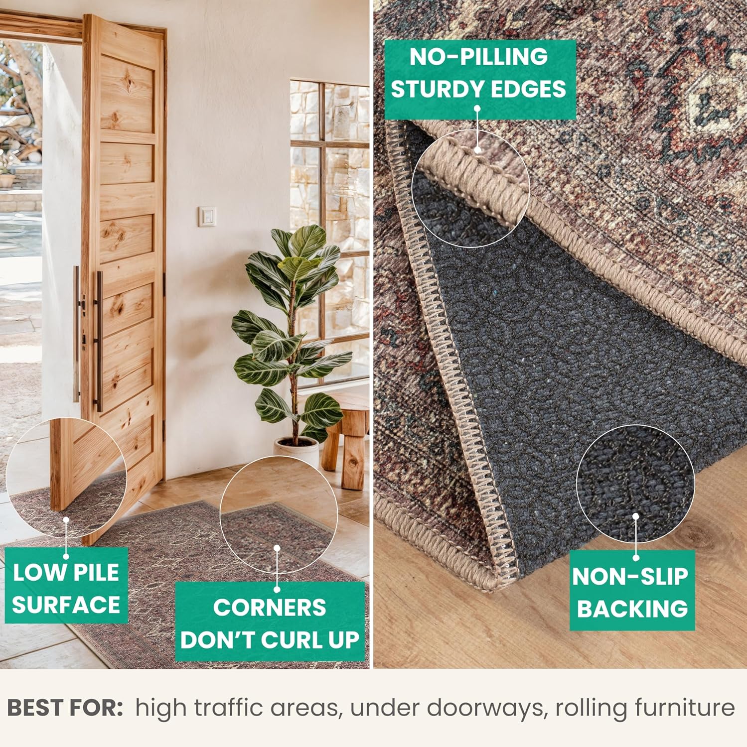 • EASY TO SETUP AND NON-SLIP: This one-piece machine washable rug with non-slip backing attached eliminates any additional setup. Simply unfold and lay flat upon arrival in the desired space. Non-slip backing prevents the rug from moving or sliding without the need for additional rug pad or grippers.