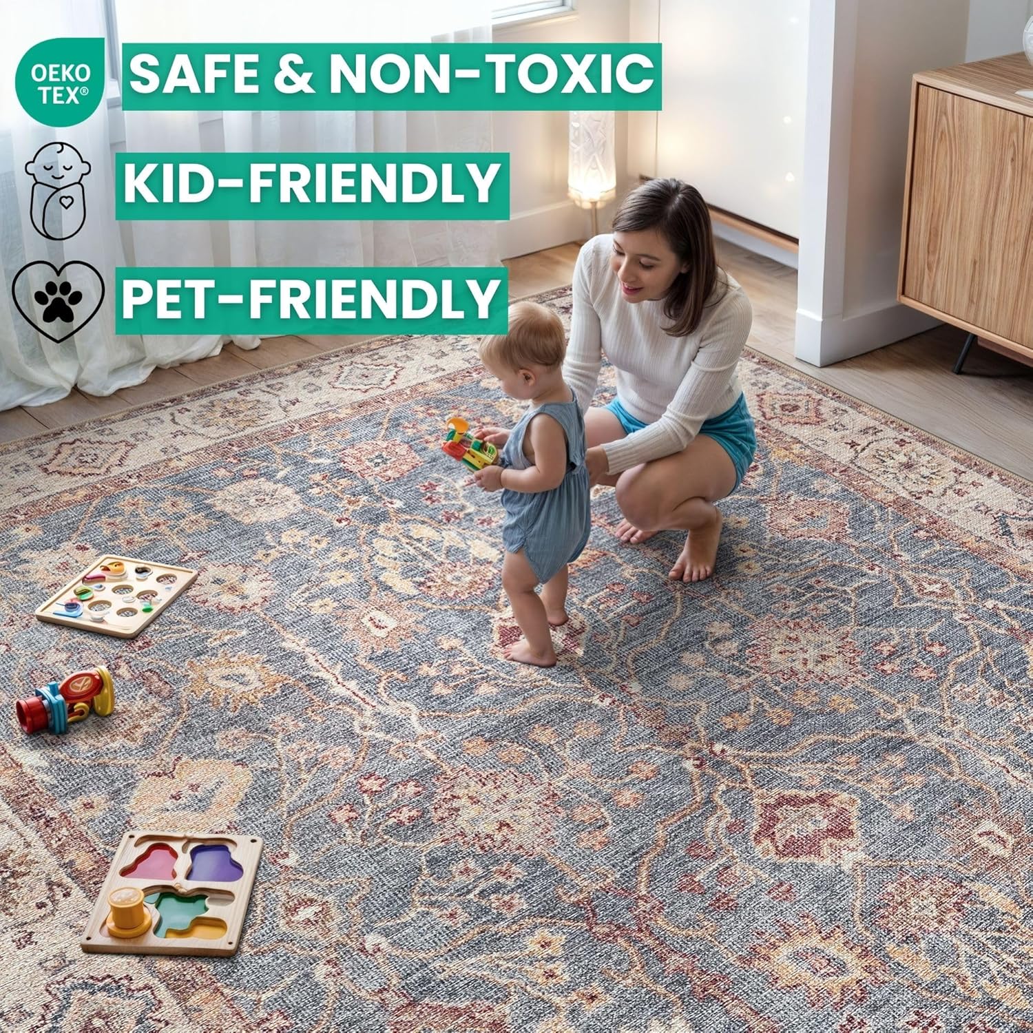 • EASY TO SETUP AND NON-SLIP: This one-piece machine washable rug with non-slip backing attached eliminates any additional setup. Simply unfold and lay flat upon arrival in the desired space. Non-slip backing prevents the rug from moving or sliding without the need for additional rug pad or grippers.